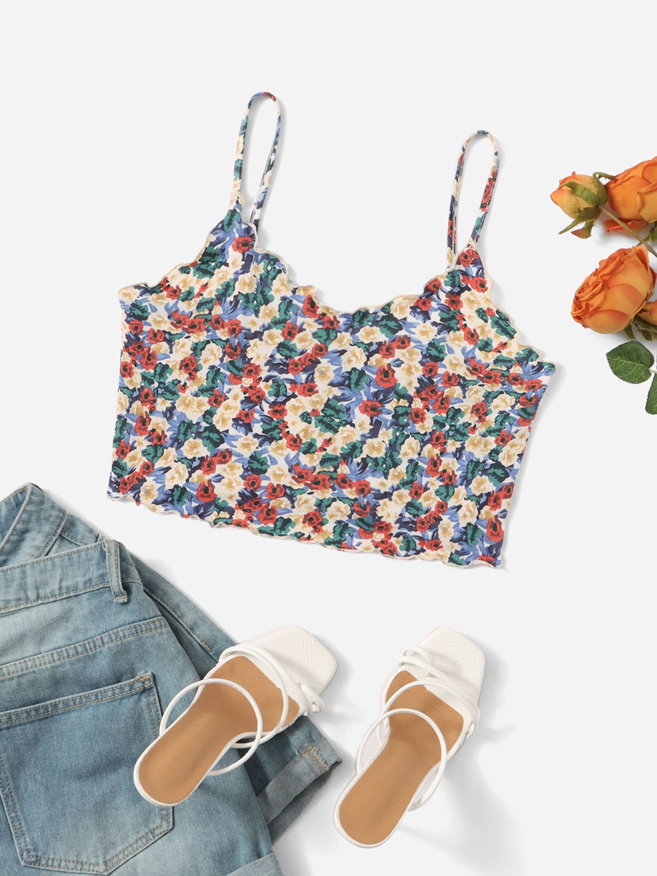 صدرية كامي زهر شامل مقلم نمط نبات الخس مقاس كبير