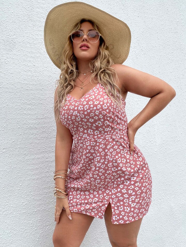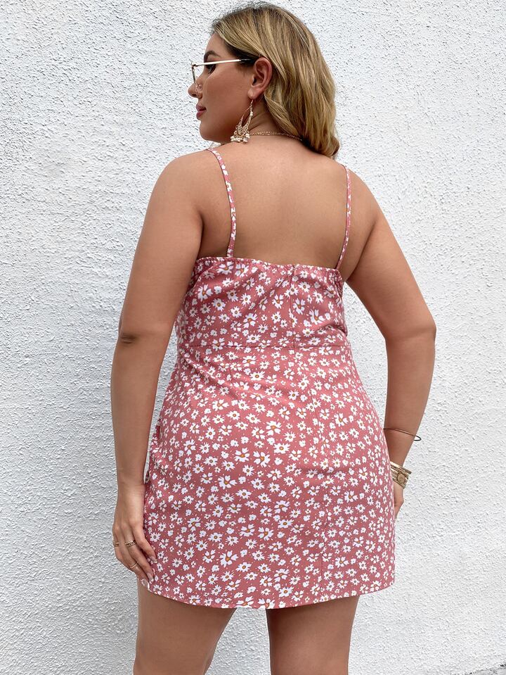 فستان كامي بحافة فتحة مزهر شامل مقاس كبير