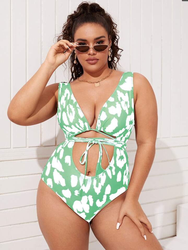 بدلة سباحة قطعة واحدة طباعة كاملة بفتحات، للصيف وأجازات الشاطئ