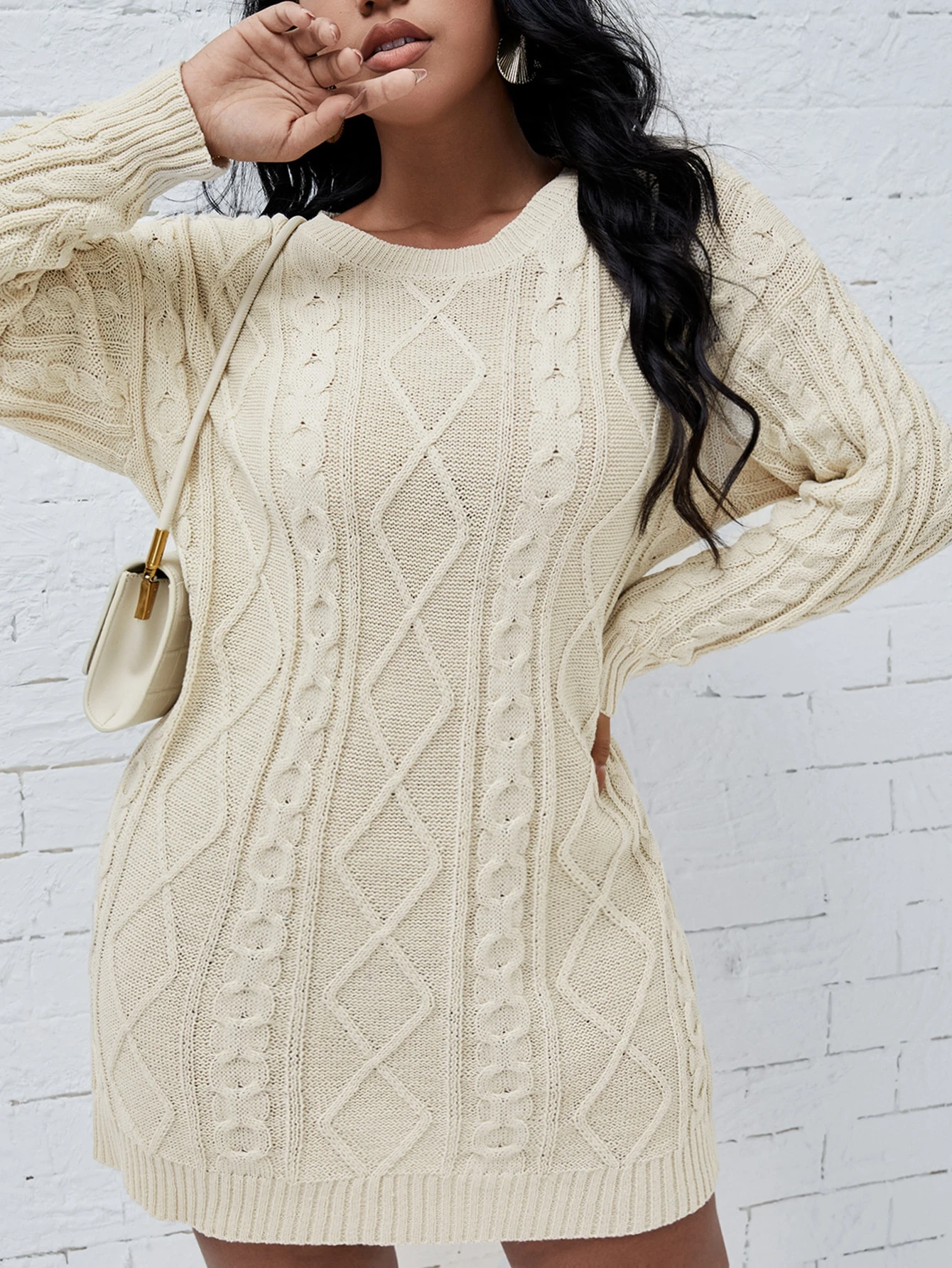 فستان صوفي محبوك منخفض الكتف ذو سطح مزخرف اراجيل مقاس كبير