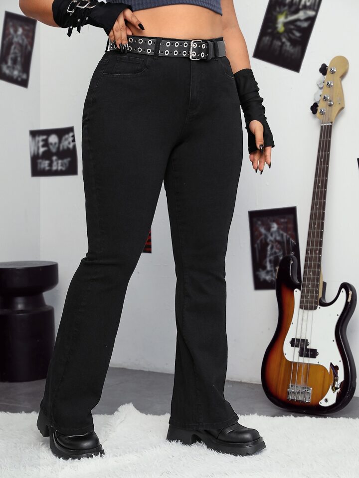 سروال جينز أسود فضفاض عالي الخصر بدون حزام