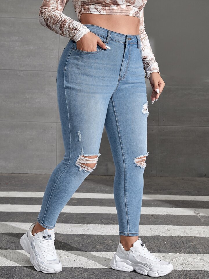 بنطلون جينز نحيل باهت اللون ممزق مهتري الحواف مقاس كبير