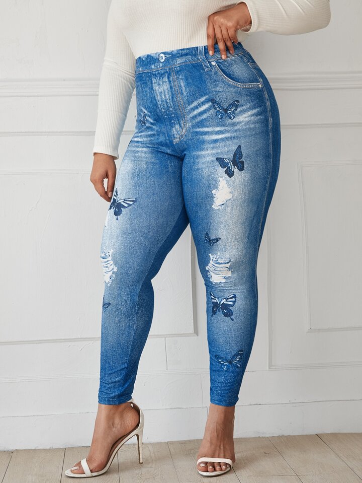 بنطلون ليجنز مع طبعة الفراشة والتأثير الجينزي