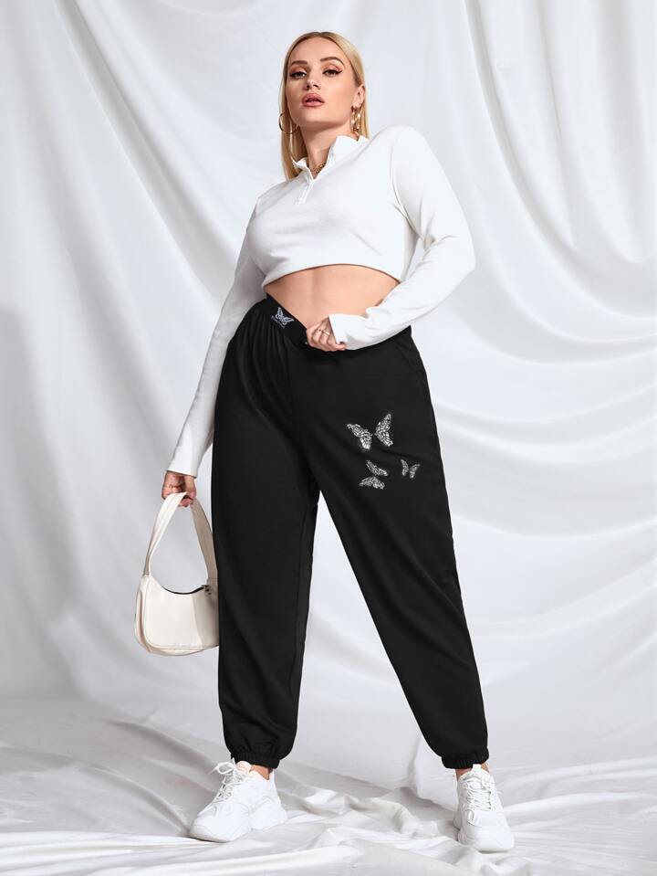 مقاس كبير بناطيل رياضي بطباعة الفراشة شريط متباين