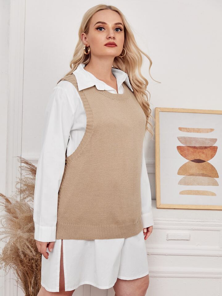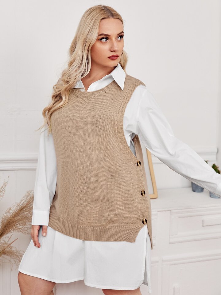 صديري صوفي بحافة فتحة بزر جانبي مقاس كبير بدون بلوزة