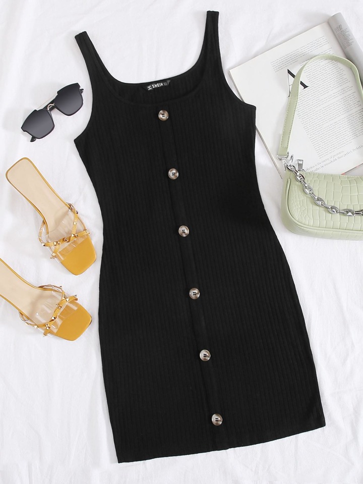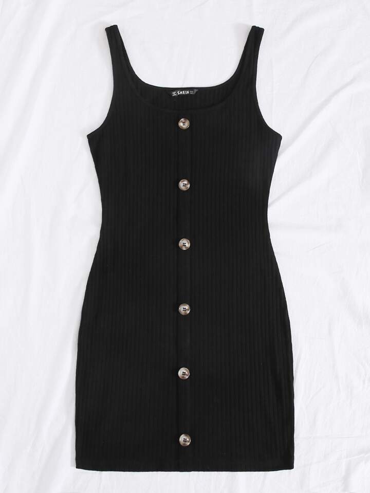 فستان محبوك مضلع مقاس كبير بزر