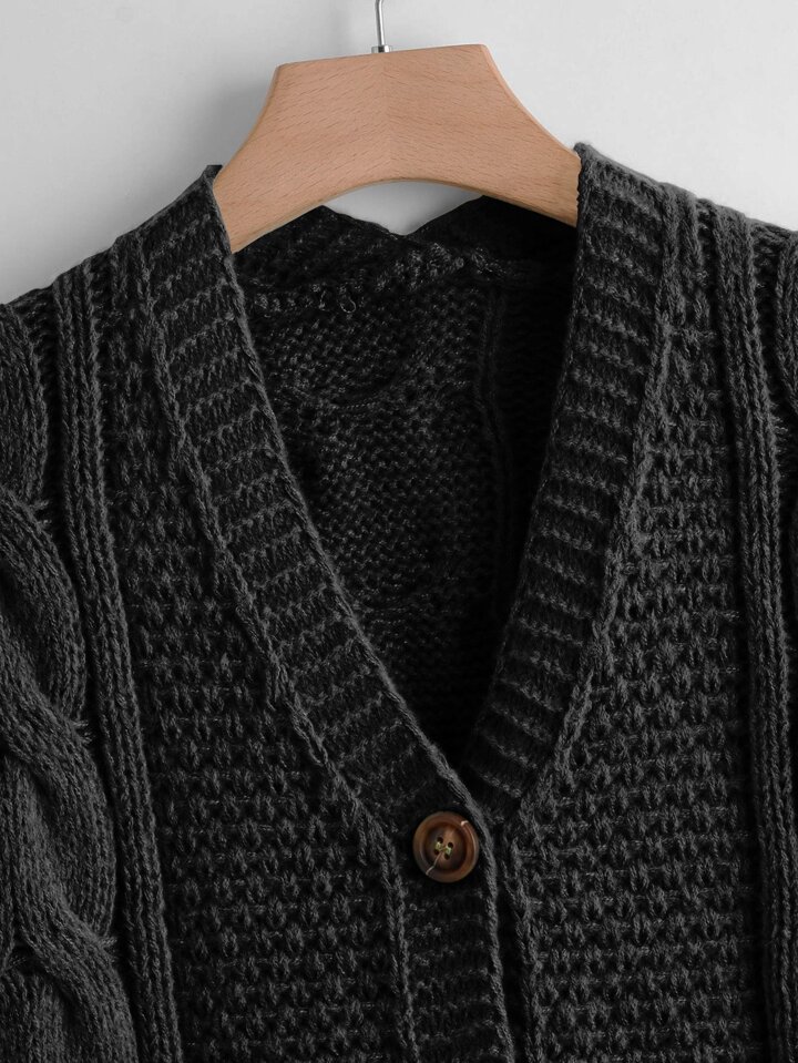 مقاس كبير كارديجان منسوجة بطبقات متقاطعة أزرار أمامية