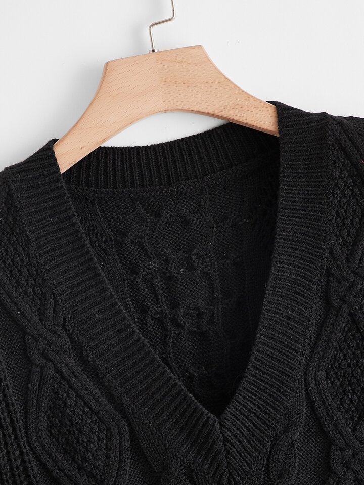 كنزة صوفية ظهر منقوشة بالخياطة الحبلية، للشتاء