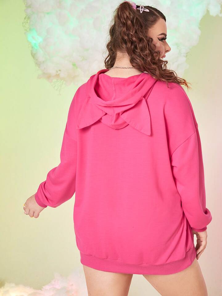 بلوزة ثقيلة مقاسات كبيرة الرباط الجيب تصميم الكرتون كاجوال