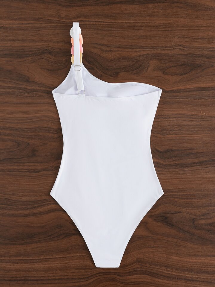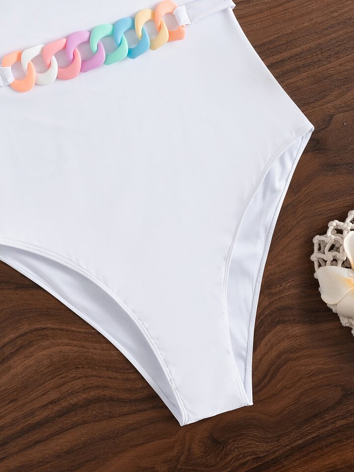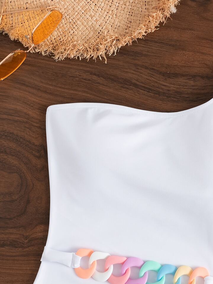بدلة سباحة قطعة واحدة رقبة غير متماثلة مع تفصيلات سلسلة إضافية ، لقضاء عطلة الصيف على الشاطئ