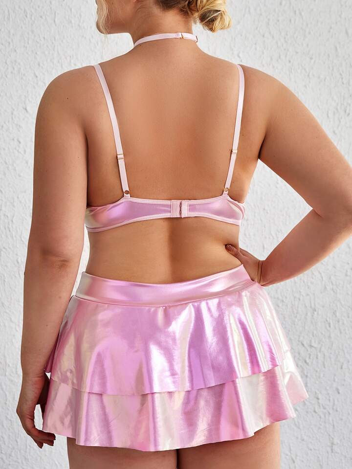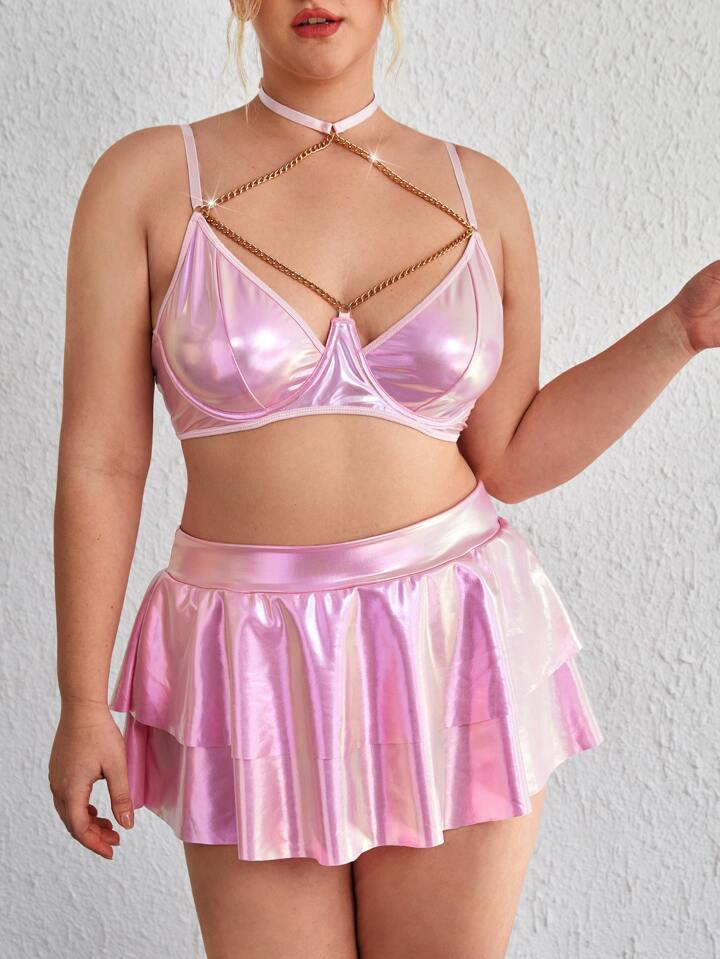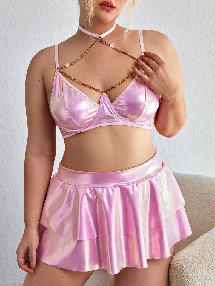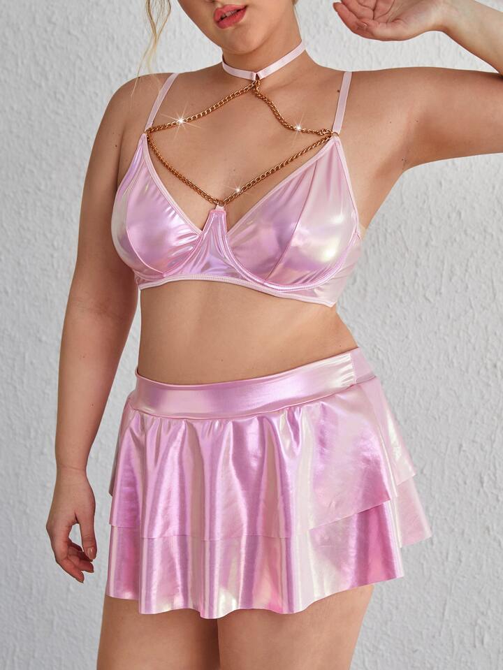 مقاس كبير متصل بسلسلة حلقة معدني ثياب حمالة صدر مع تنورة