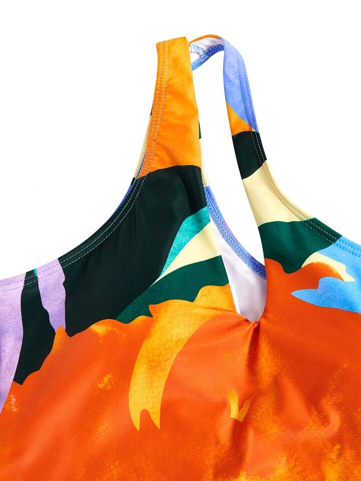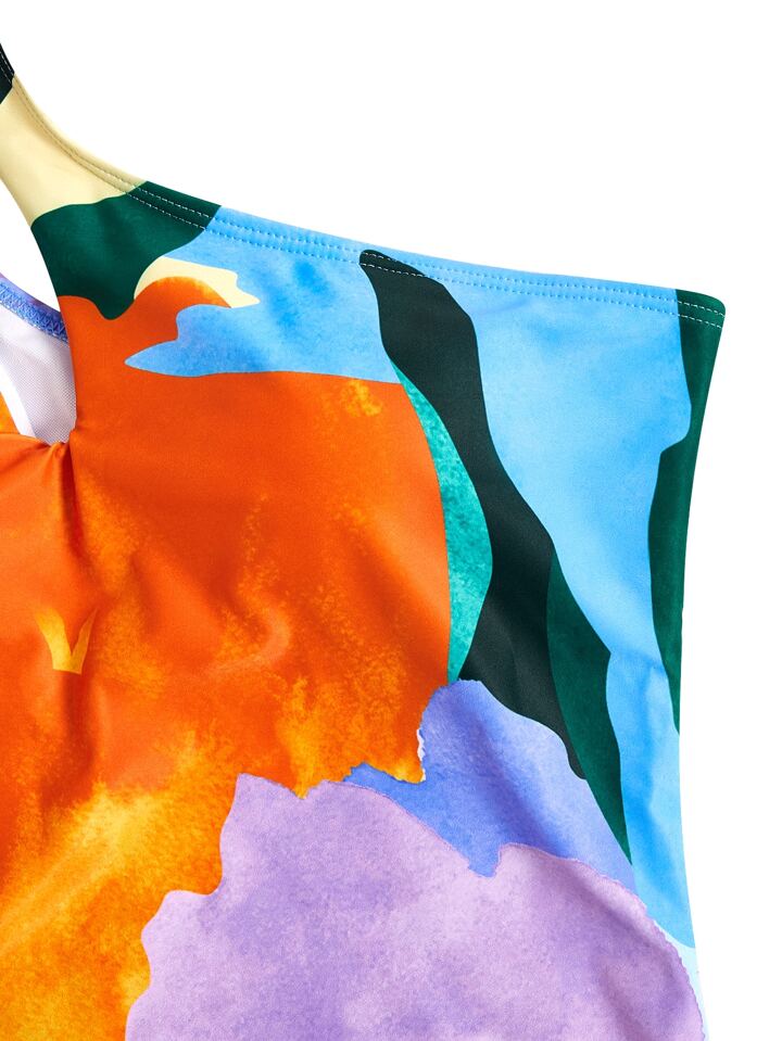 بلوزة لون كتل غير متماثلة في الرقبة، بقطعة واحدة، للصيف وعطلات الشاطئ