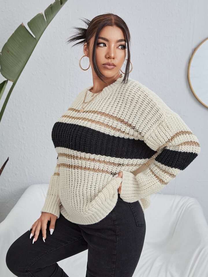 كنزة منخفض الاكتاف بألوان متجانس مقاس كبير