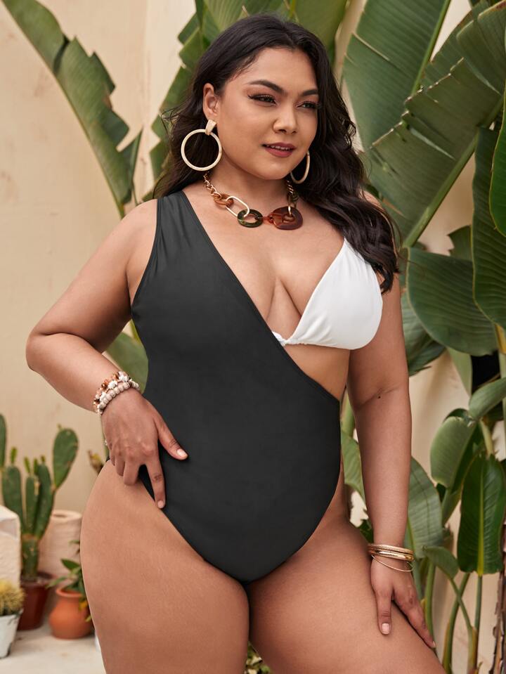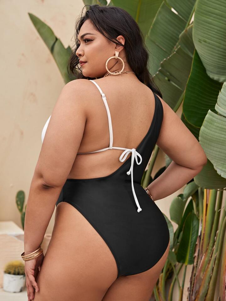 ملابس سباحة قطعة واحدة بالوان متجانس مقاس كبير