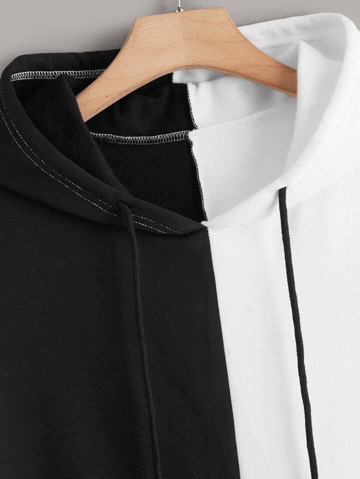 مقاس كبير هودي ألوان متباينة طباعة منخفض الاكتاف رباط