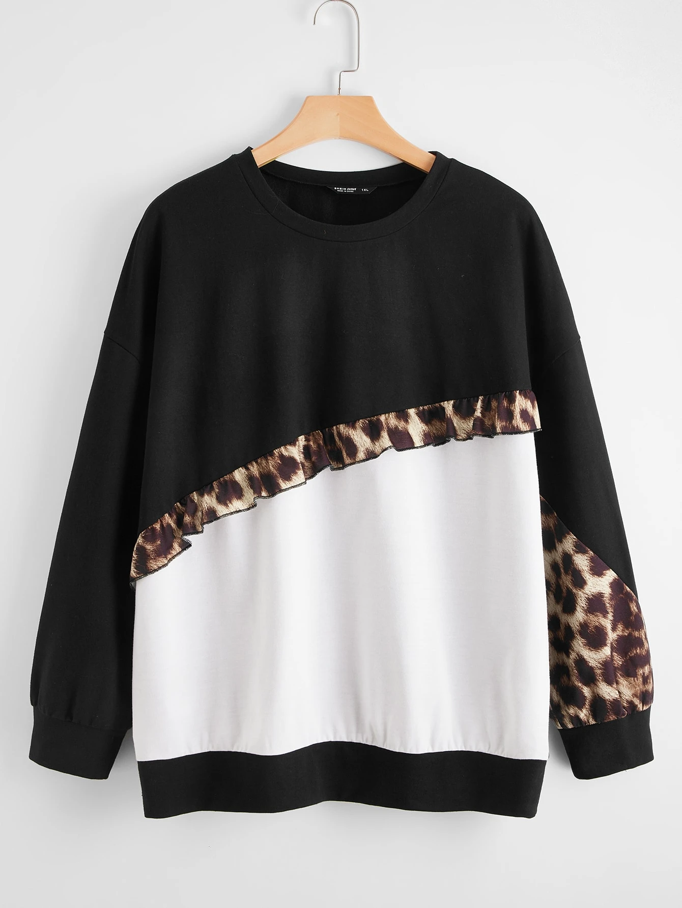 بلوزة ثقيلة مقاسات كبيرة الدانتيل منتفض حاجز اللون كاجوال