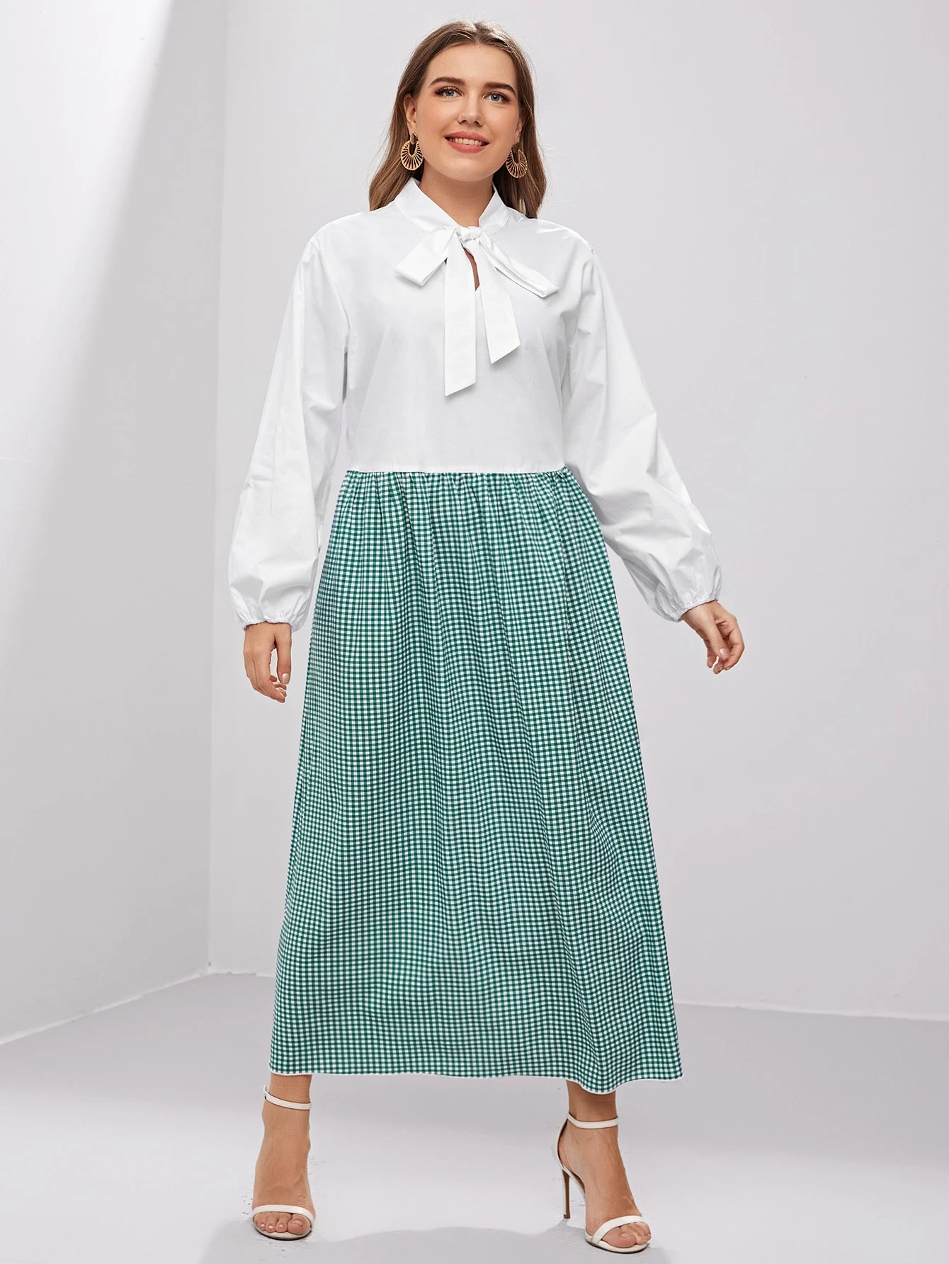 فستان سموك بربطة عنق مقلم متباين مقاس كبير