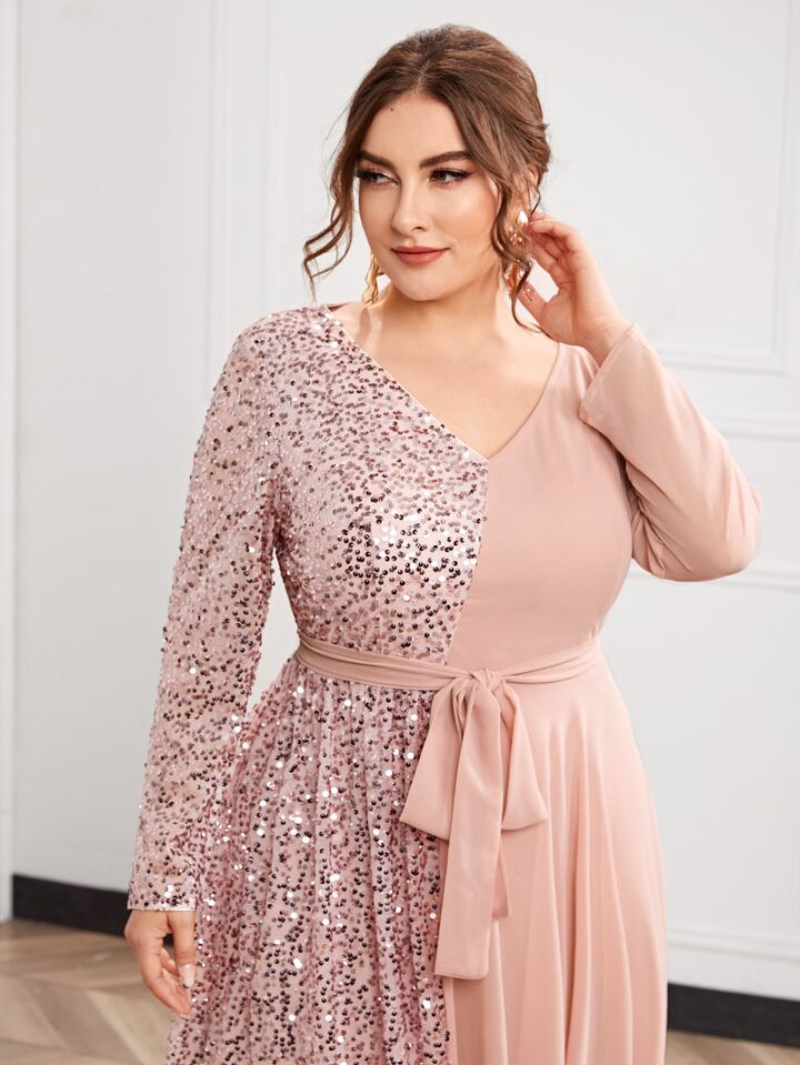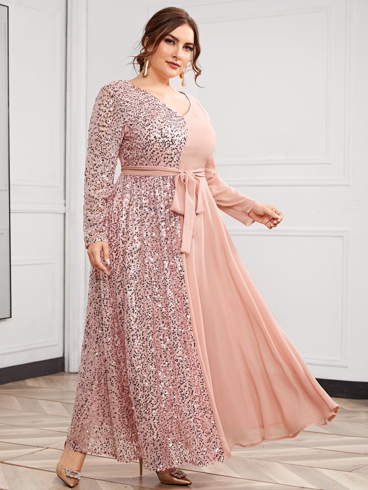 فساتين مقاسات كبيرة لمعة متباينة حاجز اللون براقة
