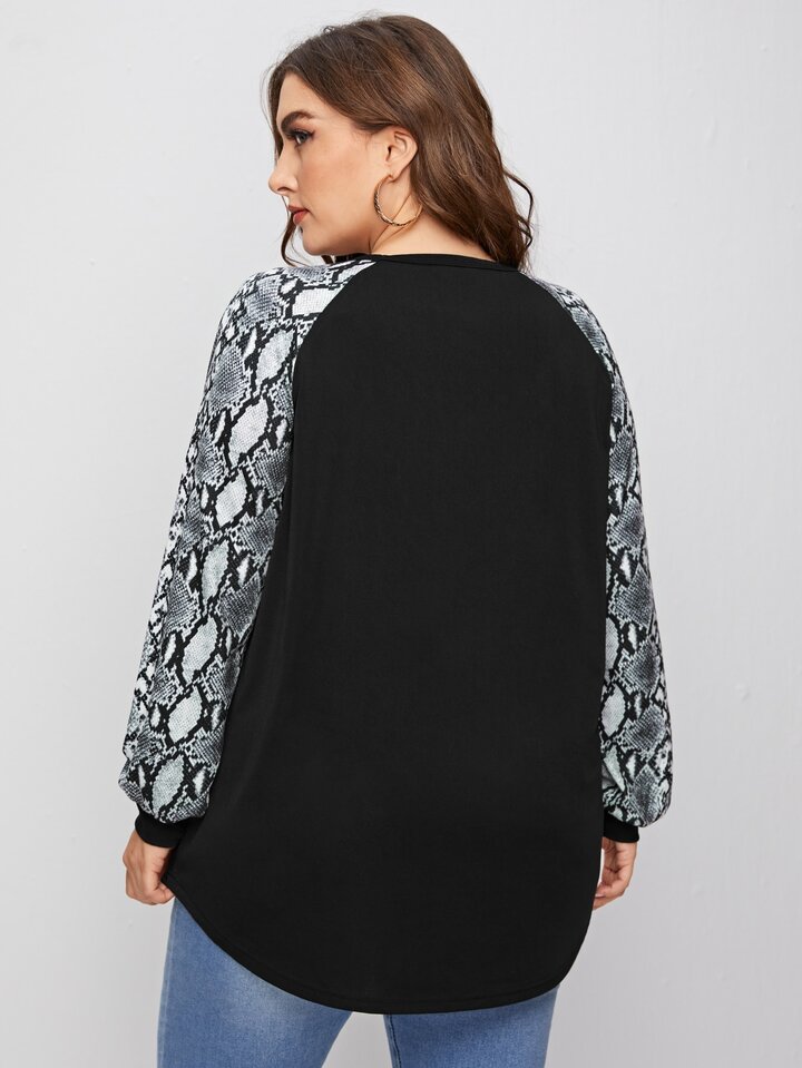 تي شيرت بأكمام راجلان جلد ثعبان متباين مقاس كبير