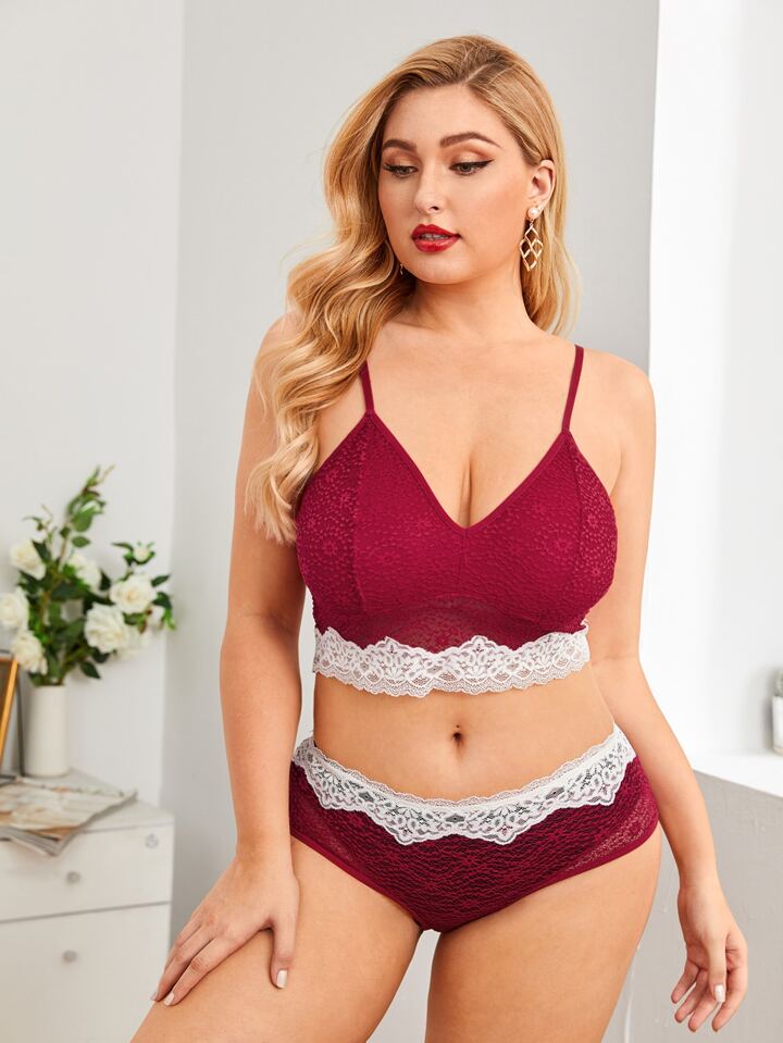طقم سروال مع حمالة صدر مقاس كبير مشد المتباين الصاف الأحمر أنيقة