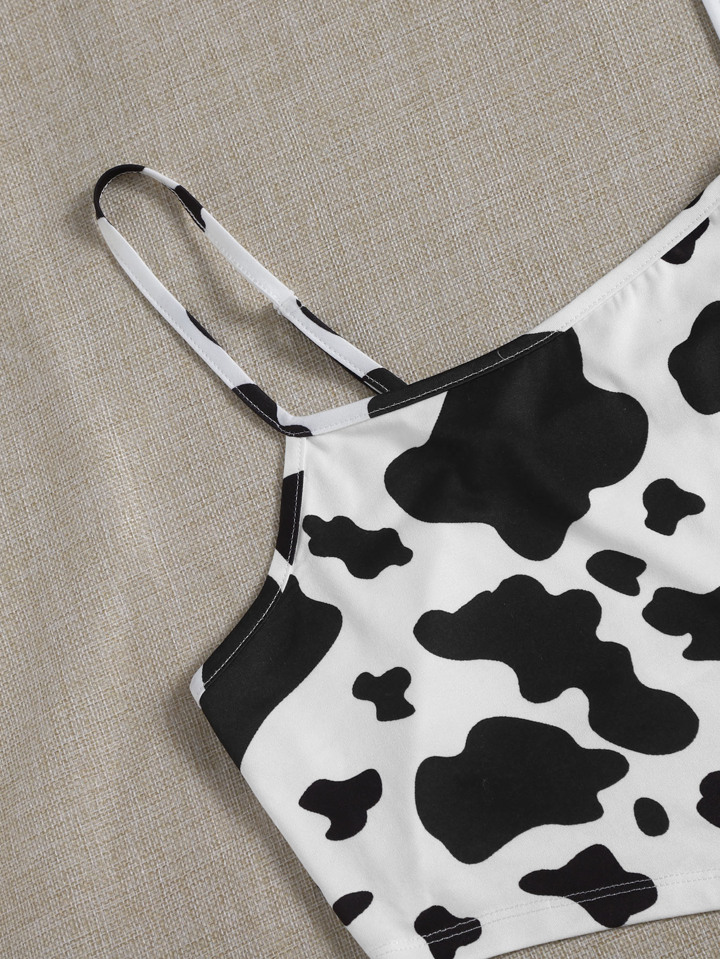 صدرية كامي بطباعة بقرة حافة غير متماثل مقاس كبير
