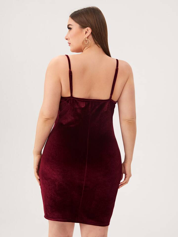 فستان مخملي ضيق بطيات في الرقبة ، شتوي