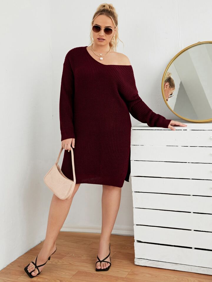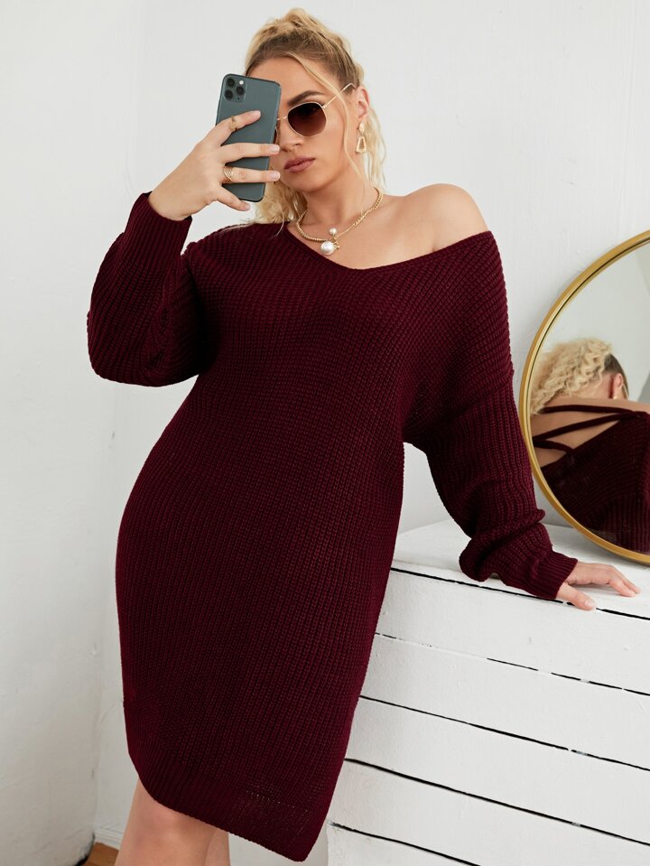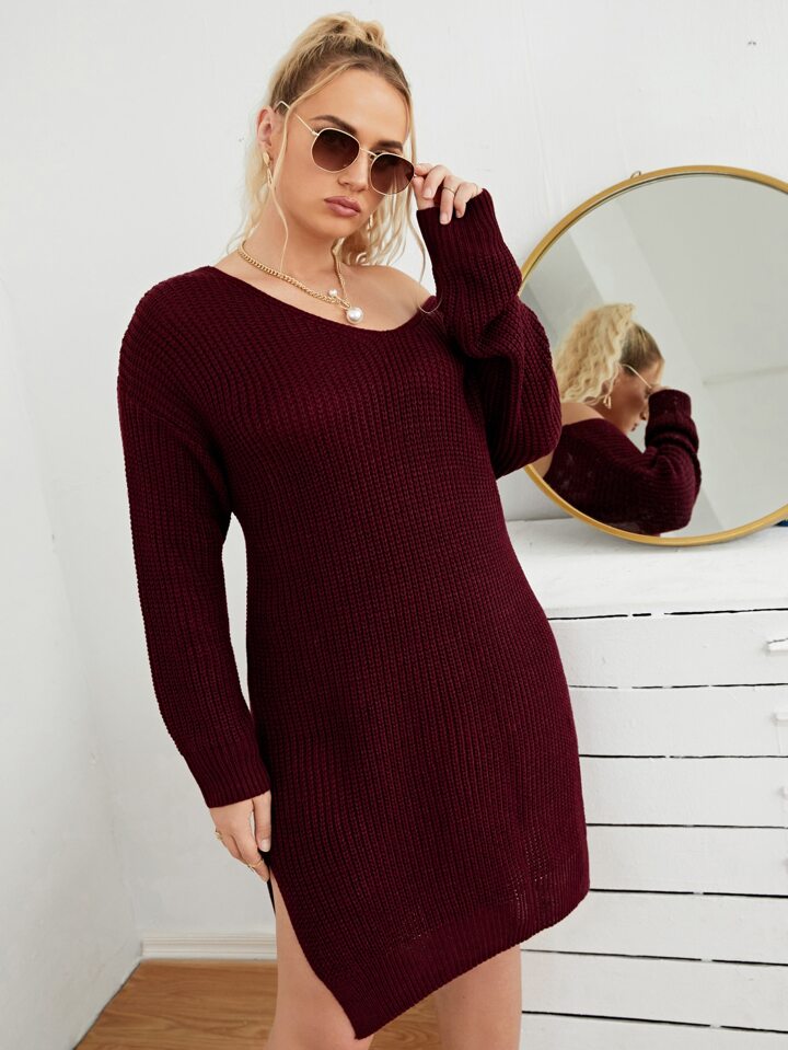 فستان صوفي محبوك بحافة مشقوق بظهر متقاطع مقاس كبير