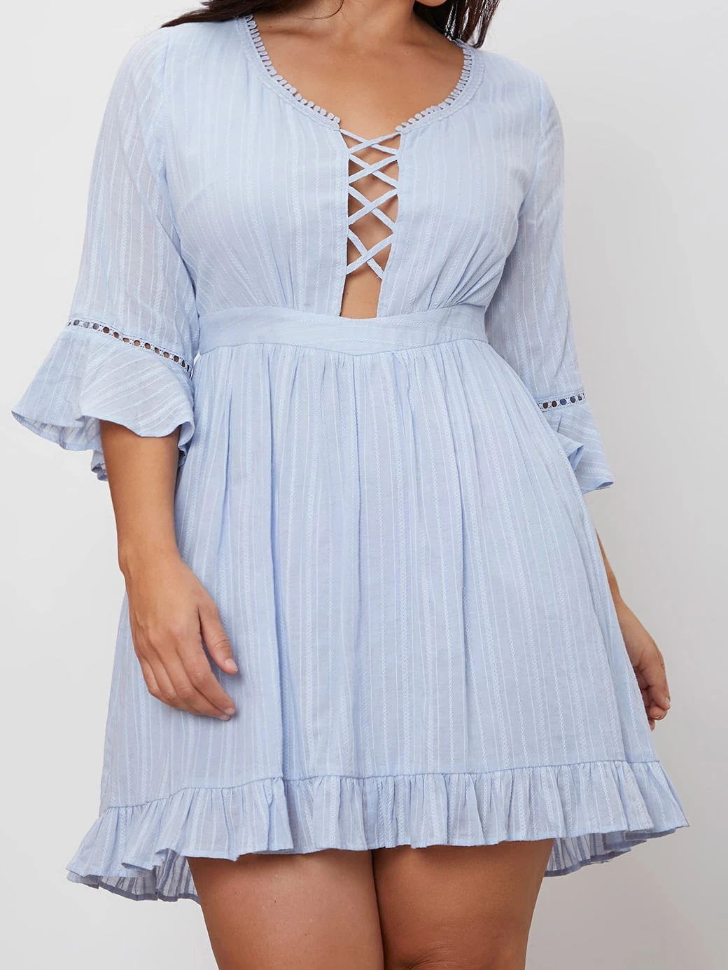 مقاس كبير فساتين متقاطع سحاب خلفي حافة مكشكشة