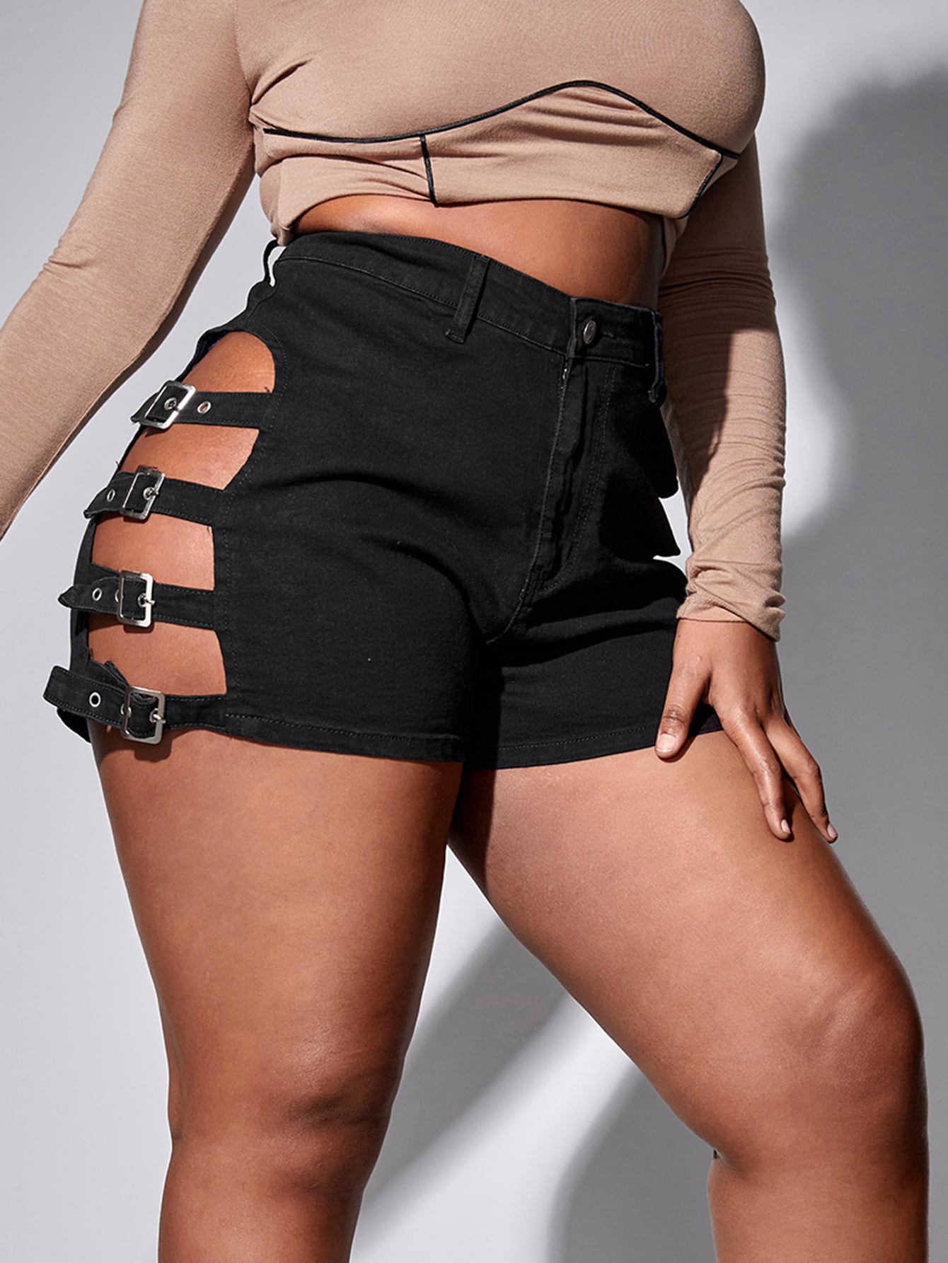 مقاس كبير شورت دنيم قص مجوف مشبك جانبي
