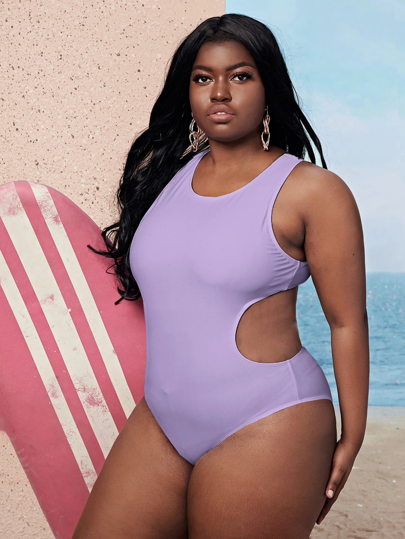 قطعة واحدة ملابس سباحة حجم كبير مثقوب الصاف كاجوال