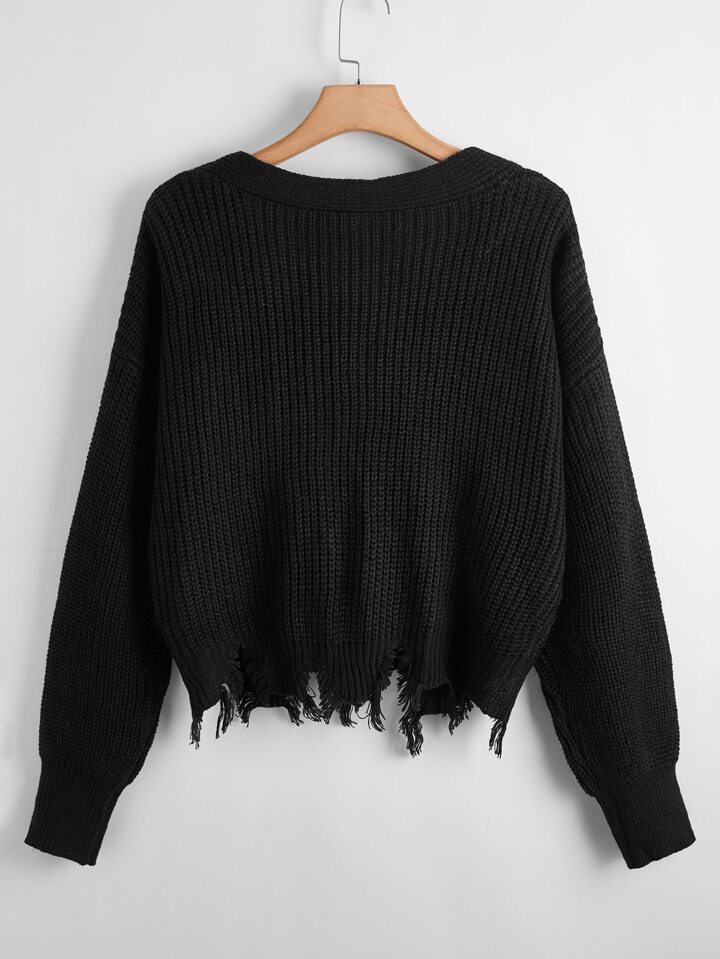 كارديجان مزرر أمامي مزهل بياقة منخفضة، للشتاء