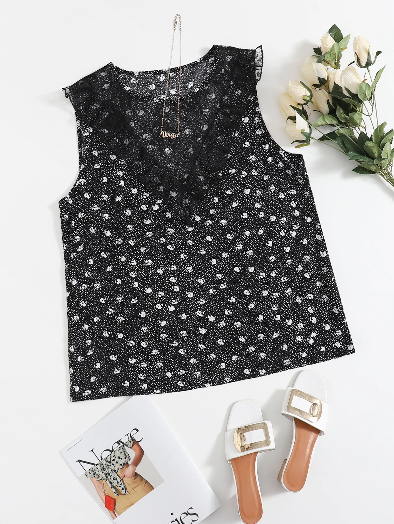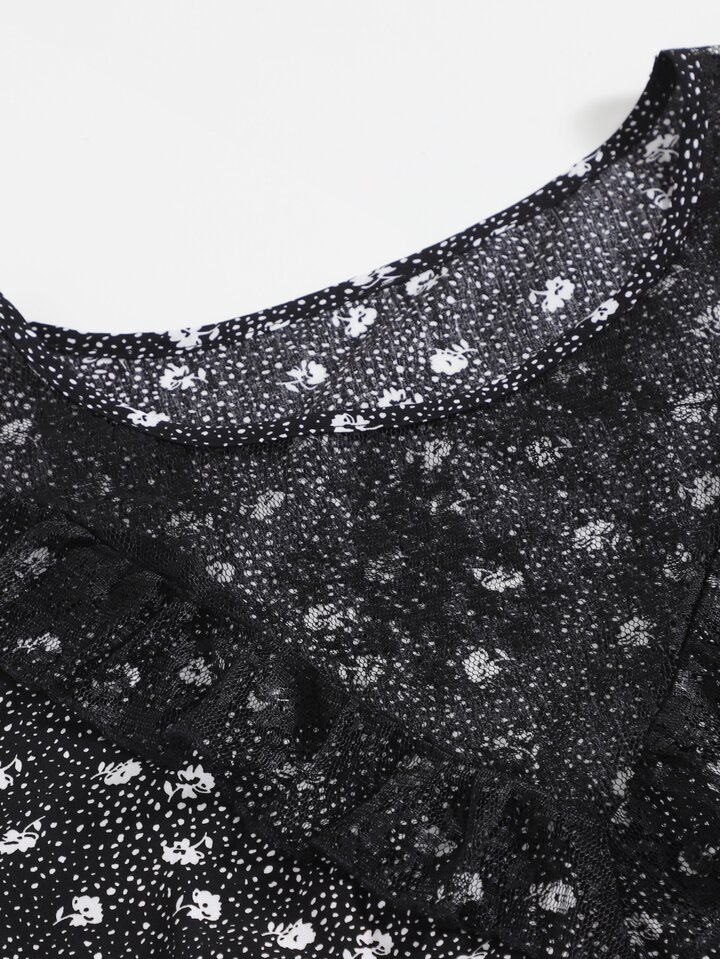 بلايز مقاسات كبيرة مشد المتباين الدانتيل منتفض ازهار صغيرة كاجوال