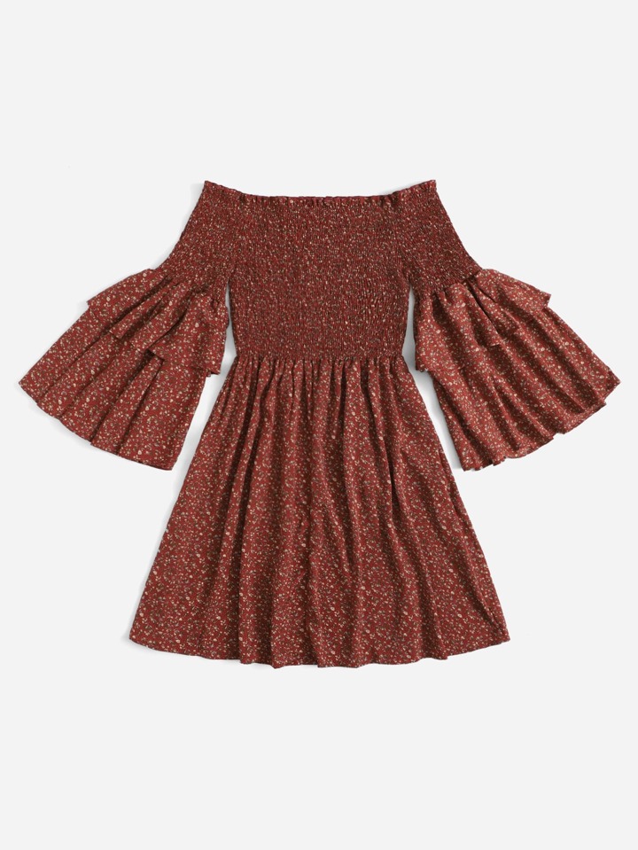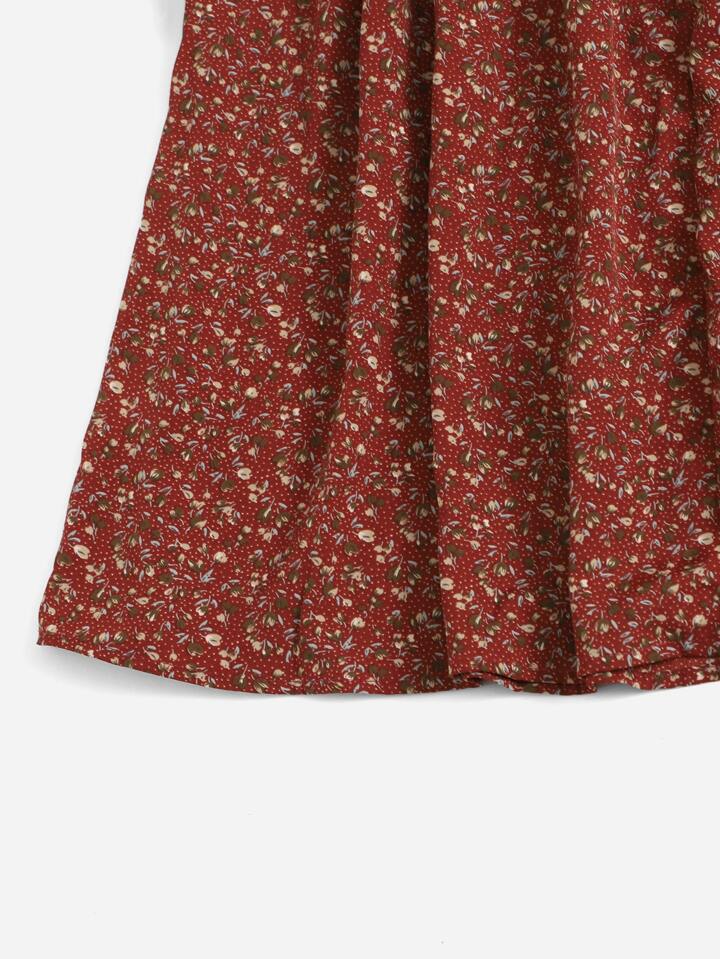 فستان فضفاض ذو وهاد مشدود على الصدر مع طبعات زهرية لإطلالات العطلات والشاطئ للنساء