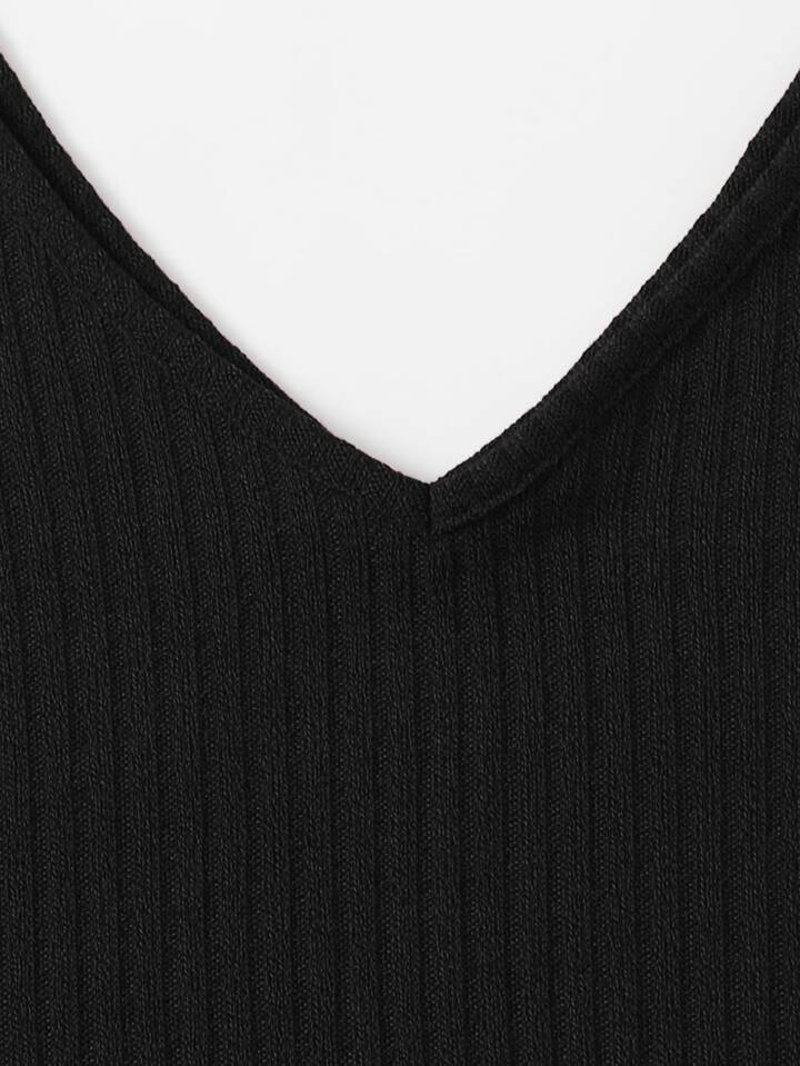 لباس علوي محبوك مضلع وبعنق V مزدوج مقاس كبير