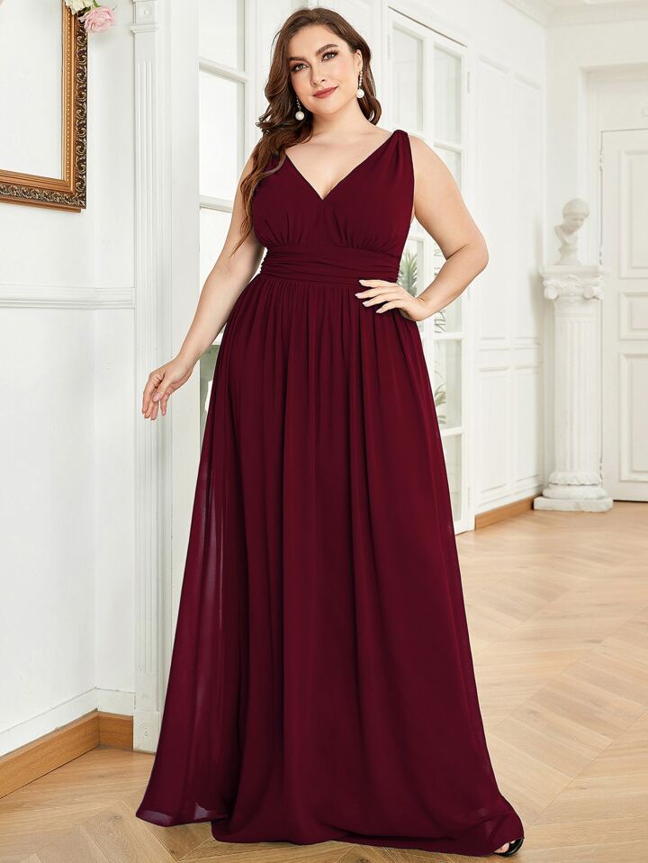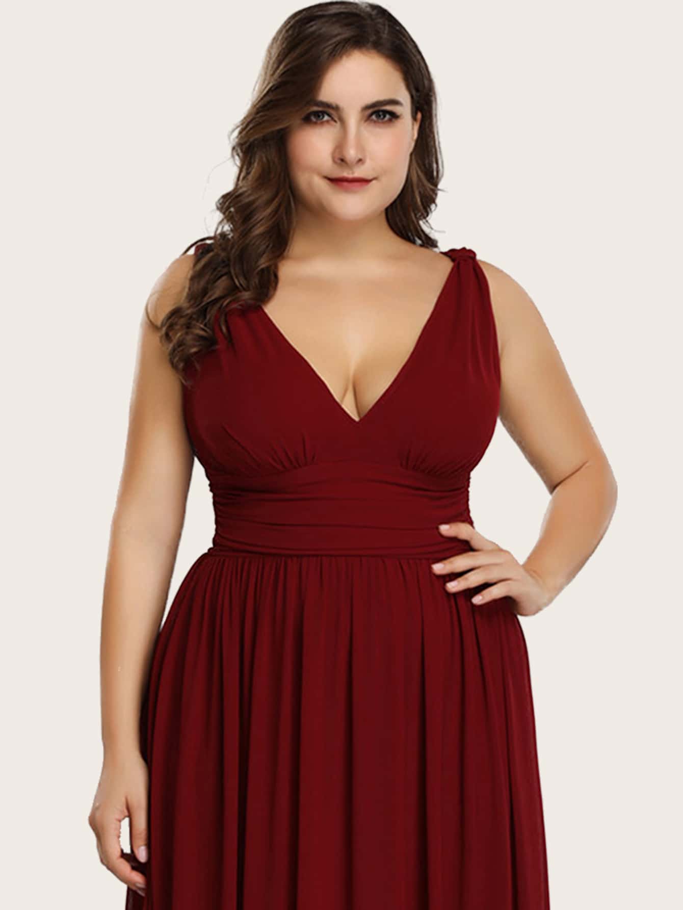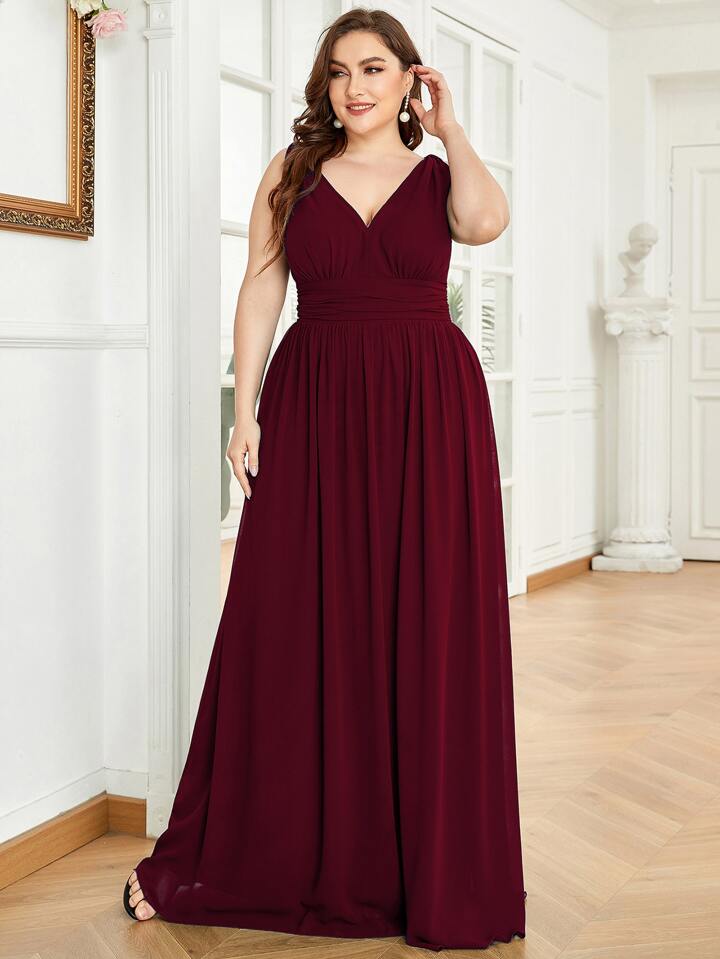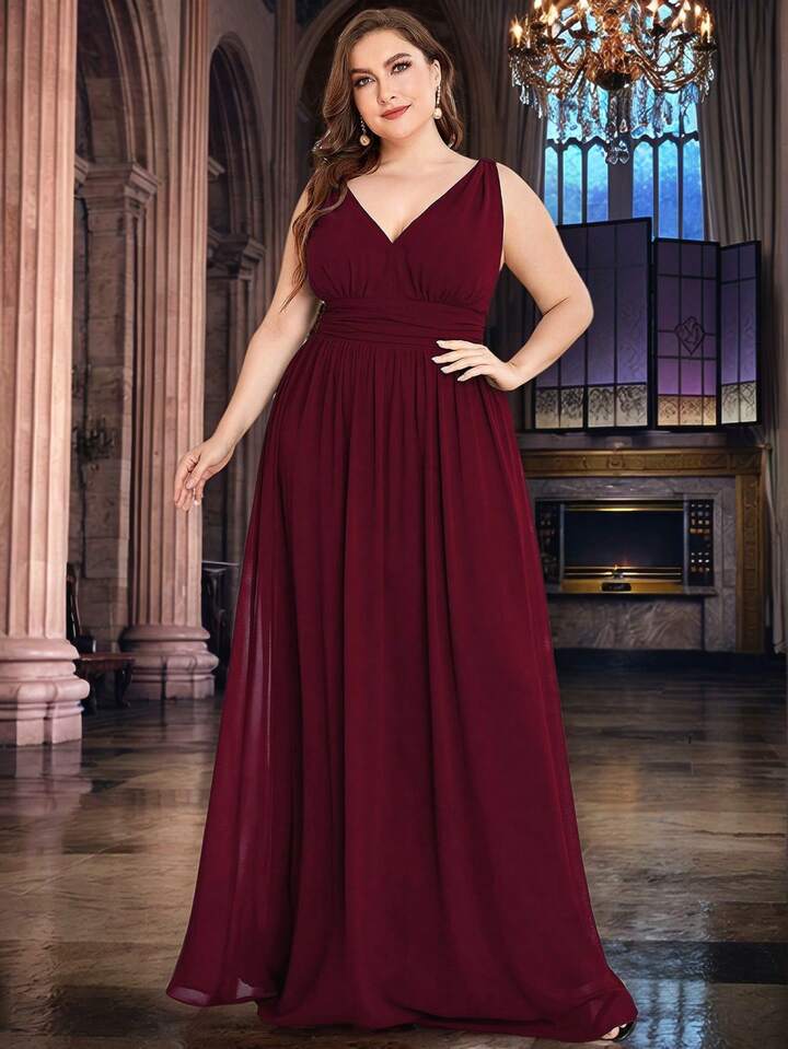 فستان سهرة أنيق بياقة على شكل حرف V مزدوج وخصر مطوي بدون أكمام، فستان وصيفة العروس باللون البرغندي الأنيق، فساتين رسمية للزفاف في فصلي الخريف والشتاء، فستان للضيوف في حفلات الزفاف، فستان للعطلات