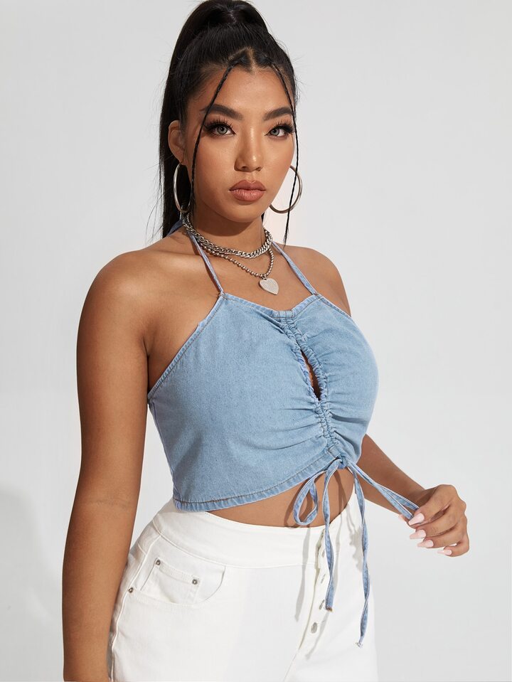 لباس علوي دنيم مكشكش برباط مقاس كبير