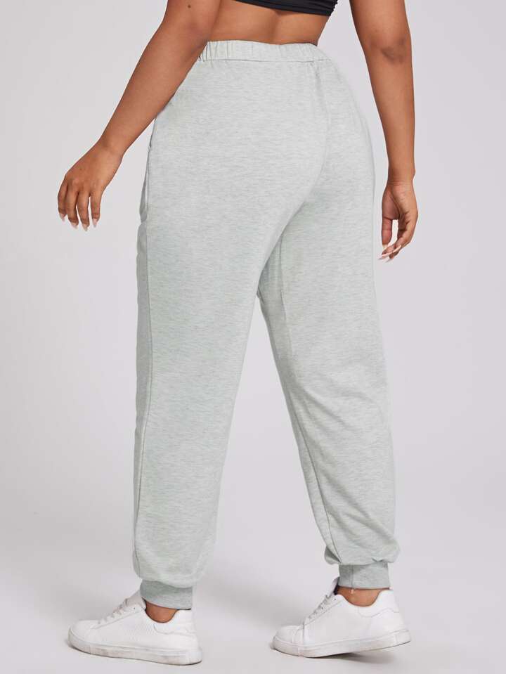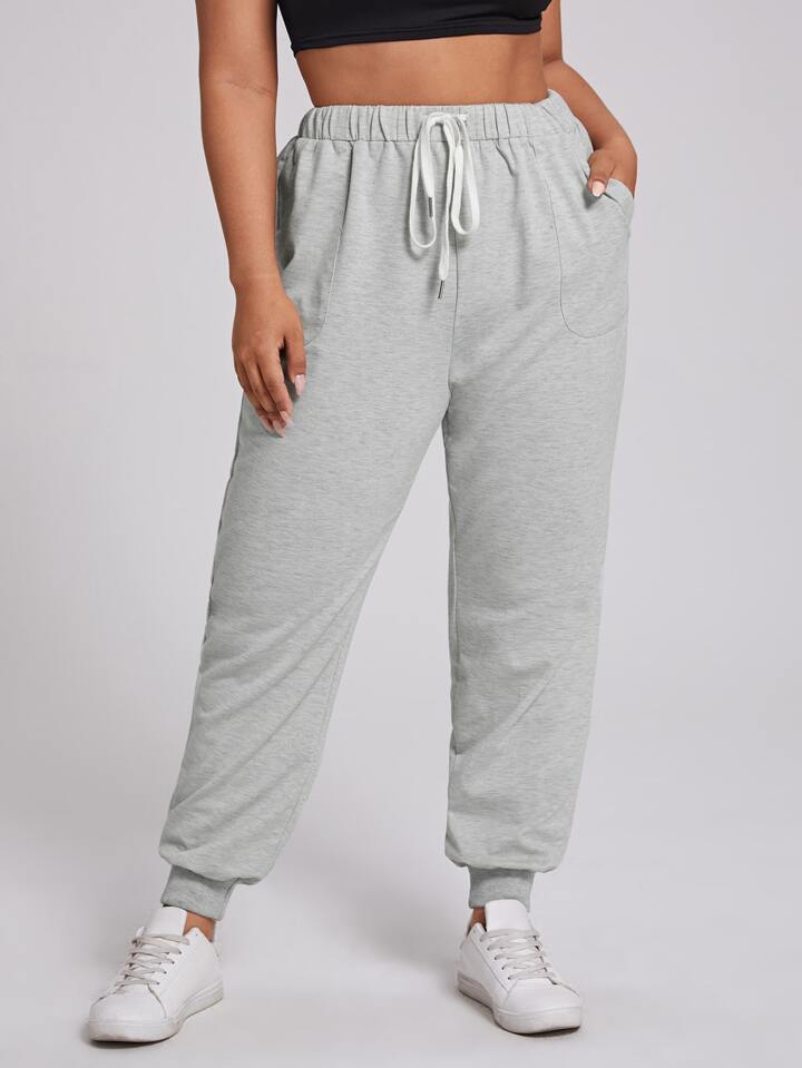 بنطال رياضي مقاس كبير برباط خصر وبلون موحد