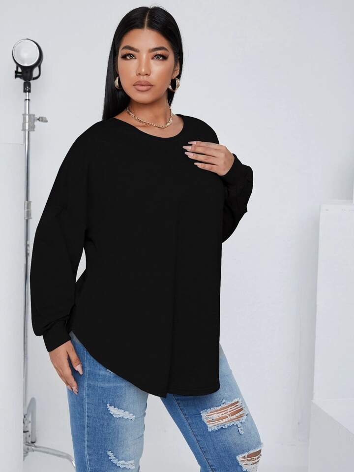 قميص ثقيل باربطة خلفية متقاطعة منخفض الكتف مقاس كبير