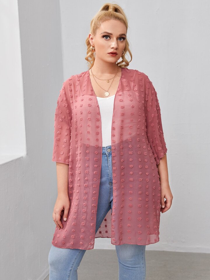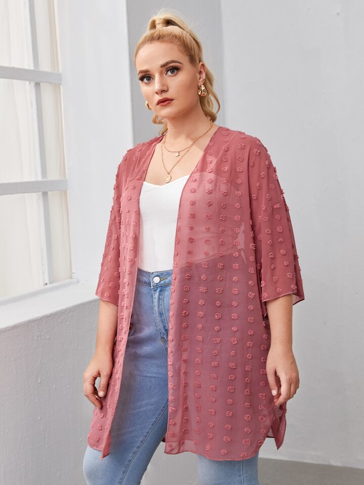 كيمون بنقاط سويسري بحافة ملفوف ومنخفض الاكتاف مقاس كبير