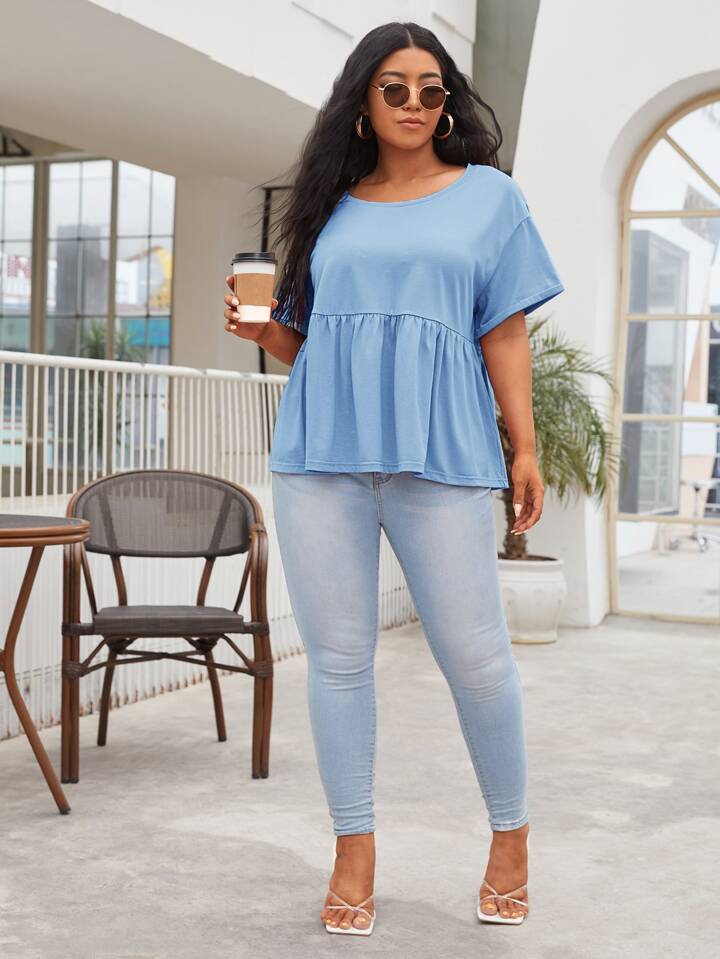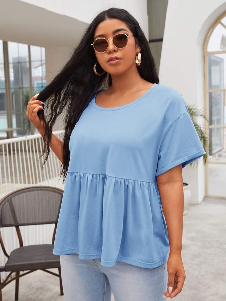 لباس علوي مطوي منخفض الاكتاف مقاس كبير