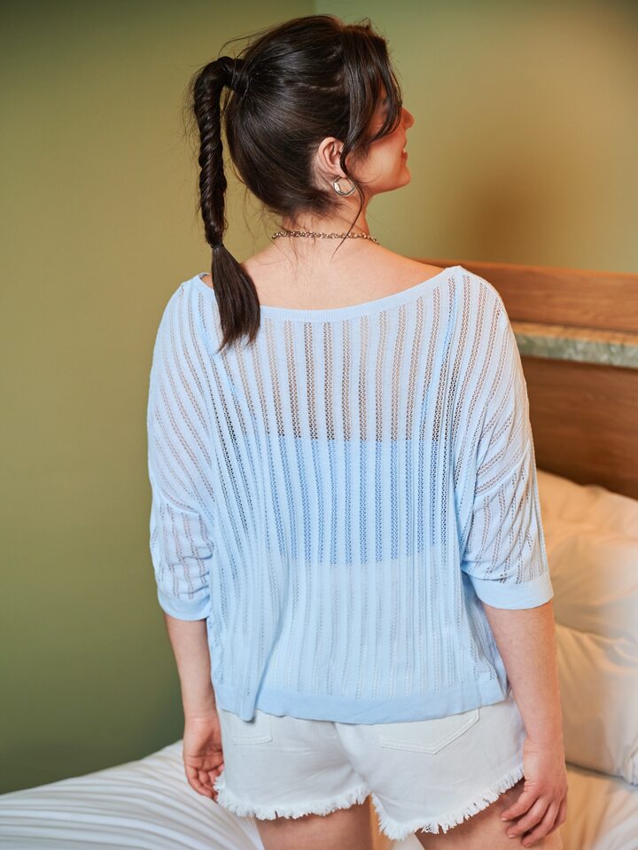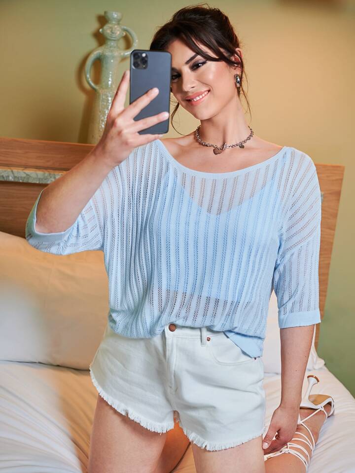 لباس علوي محبوك مزركش منخفض الكتف مقاس كبير