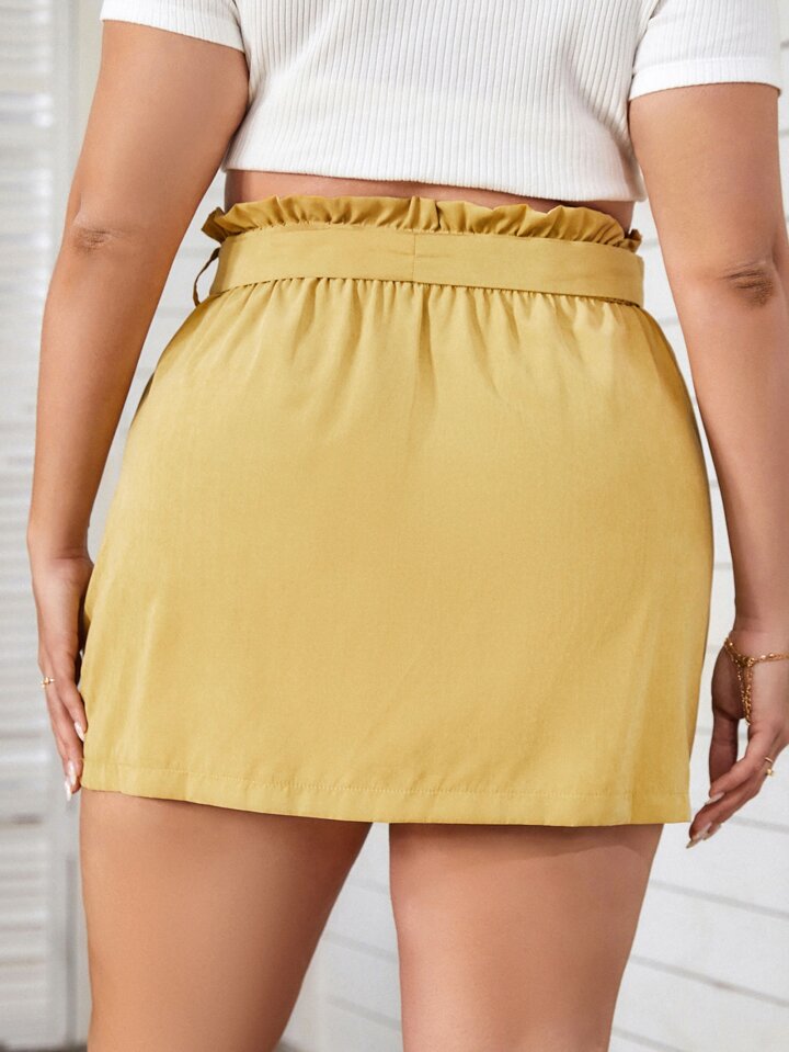 مقاس كبير تنورة جيب مزدوج زرار وهمي خصر مكشكش ورقي حزام
