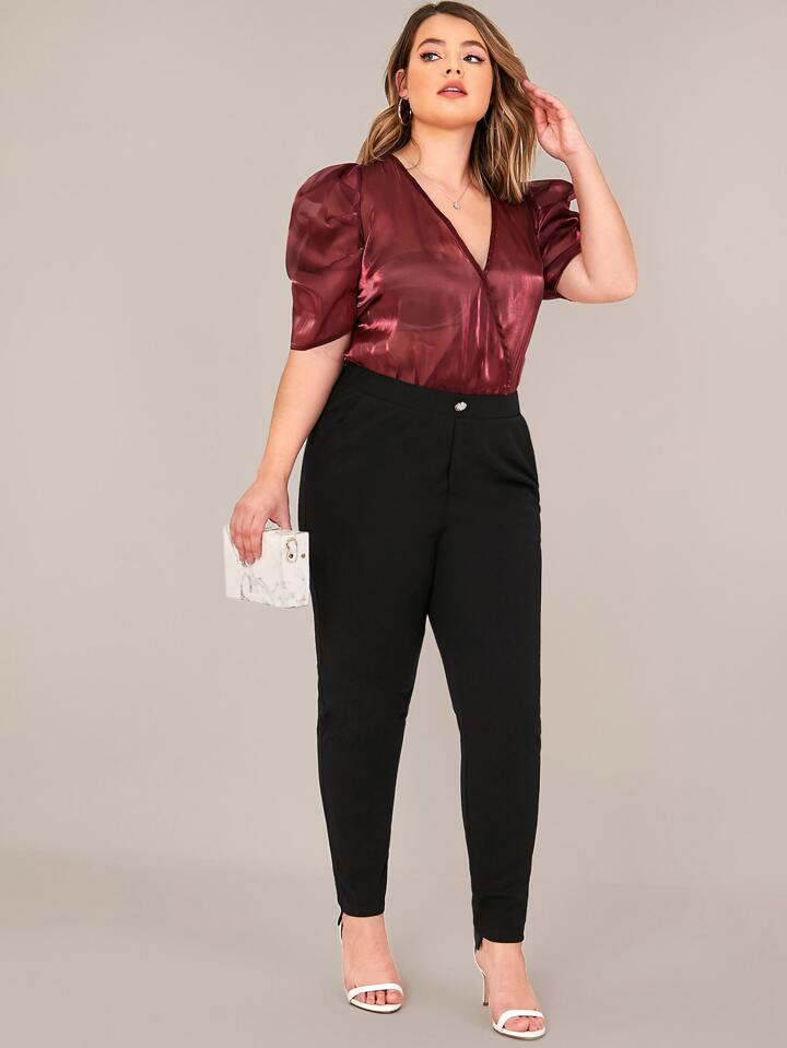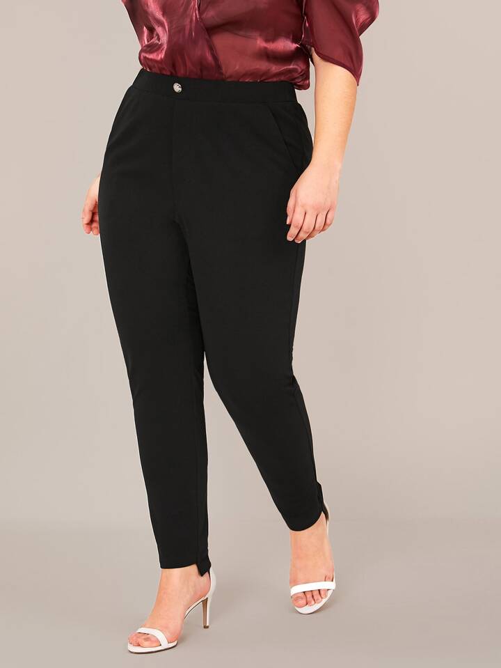 بنطلون بحافة عالي ومنخفض وبجيب مائل مقاس كبير وبخصر مطاطي