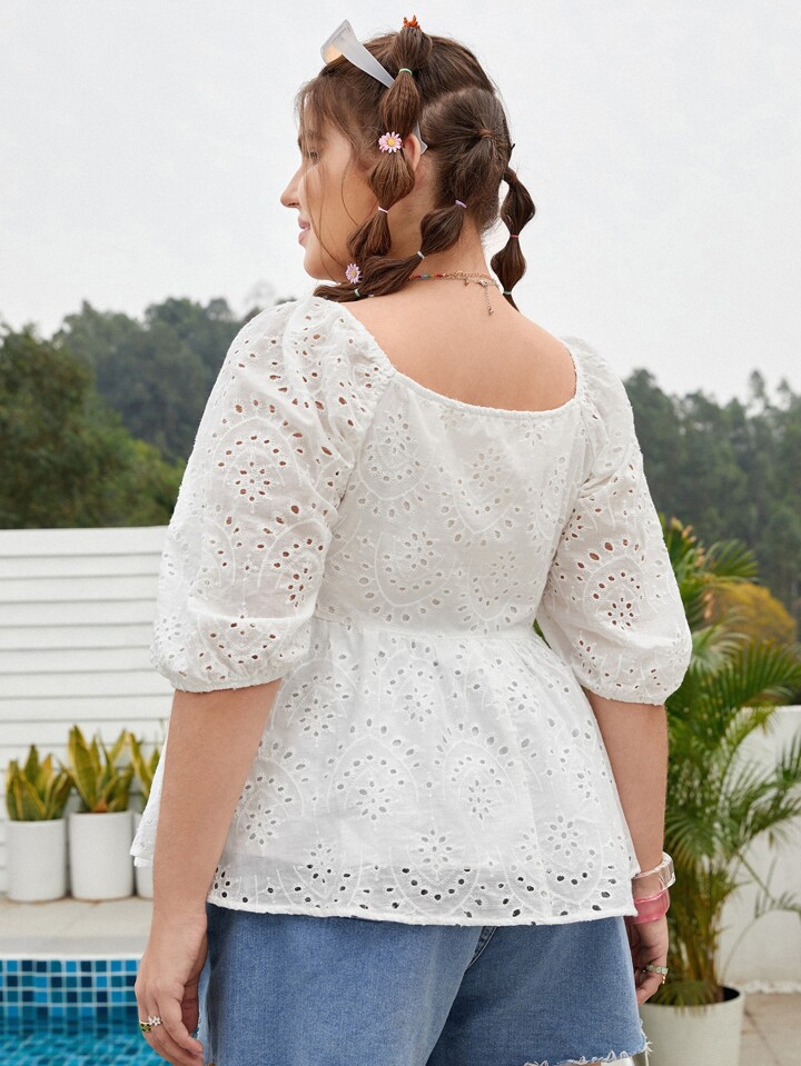 مقاس كبير لباس علوي مطرز حلقي حافة مكشكشة