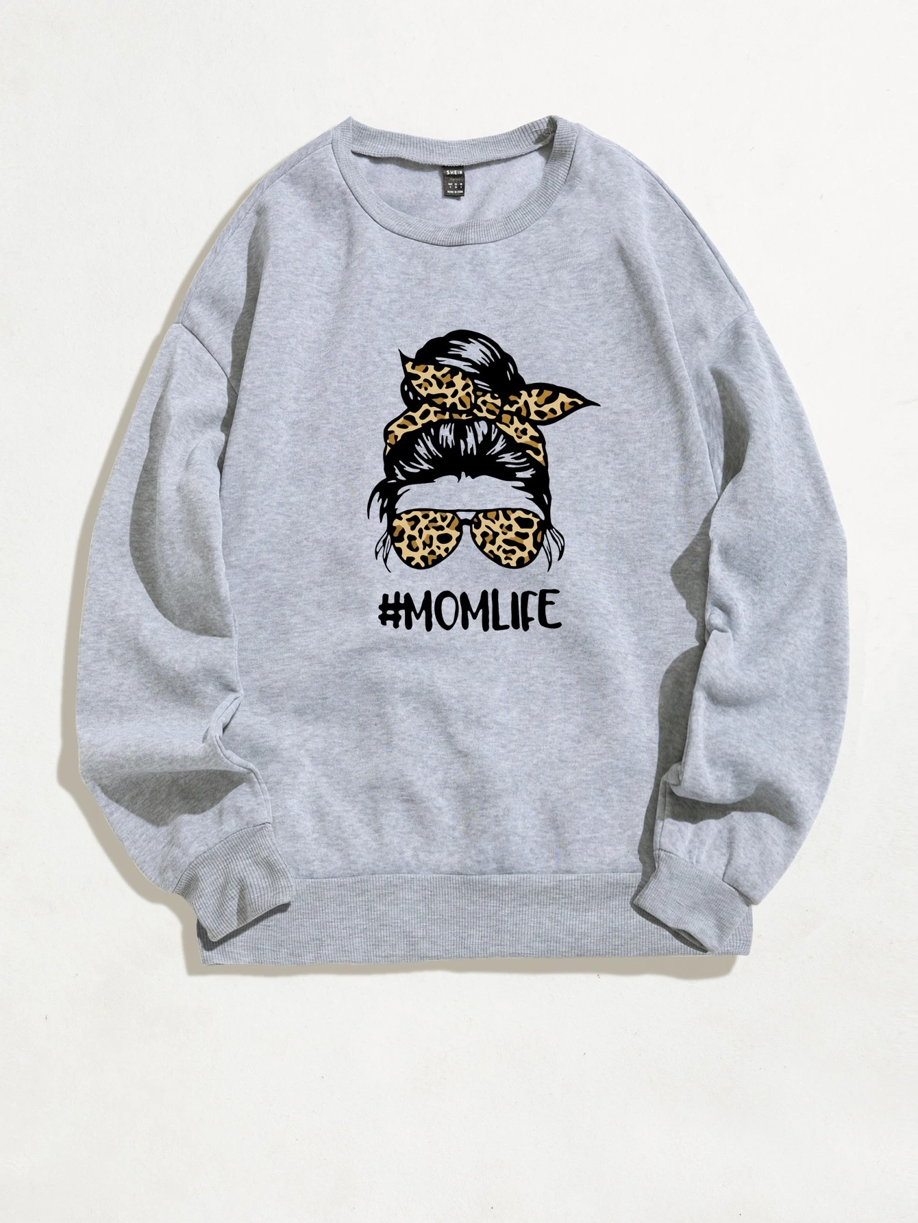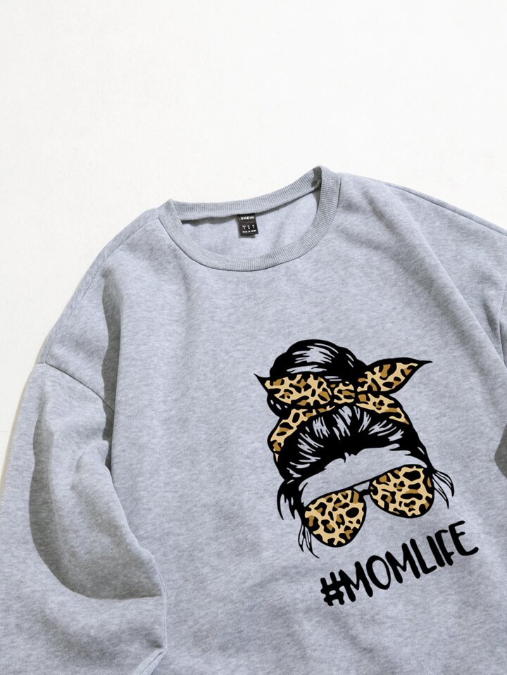 قميص ثقيل مبطن حراري منخفض الكتف بجرافيك عبارة وشخصية مقاس كبير
