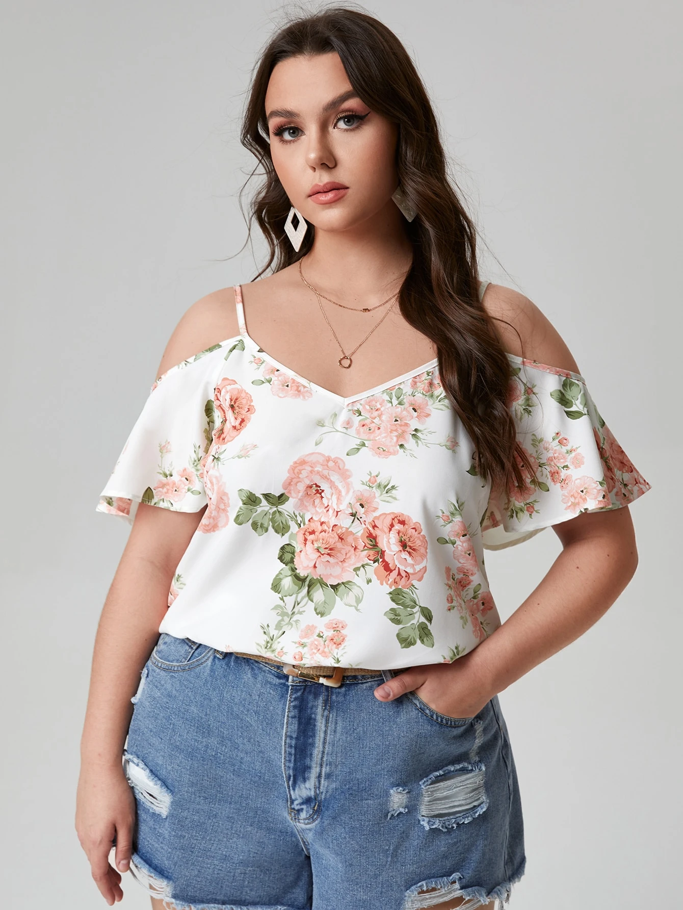 بلوزة مكشوف الاكتاف مزهر مقاس كبير