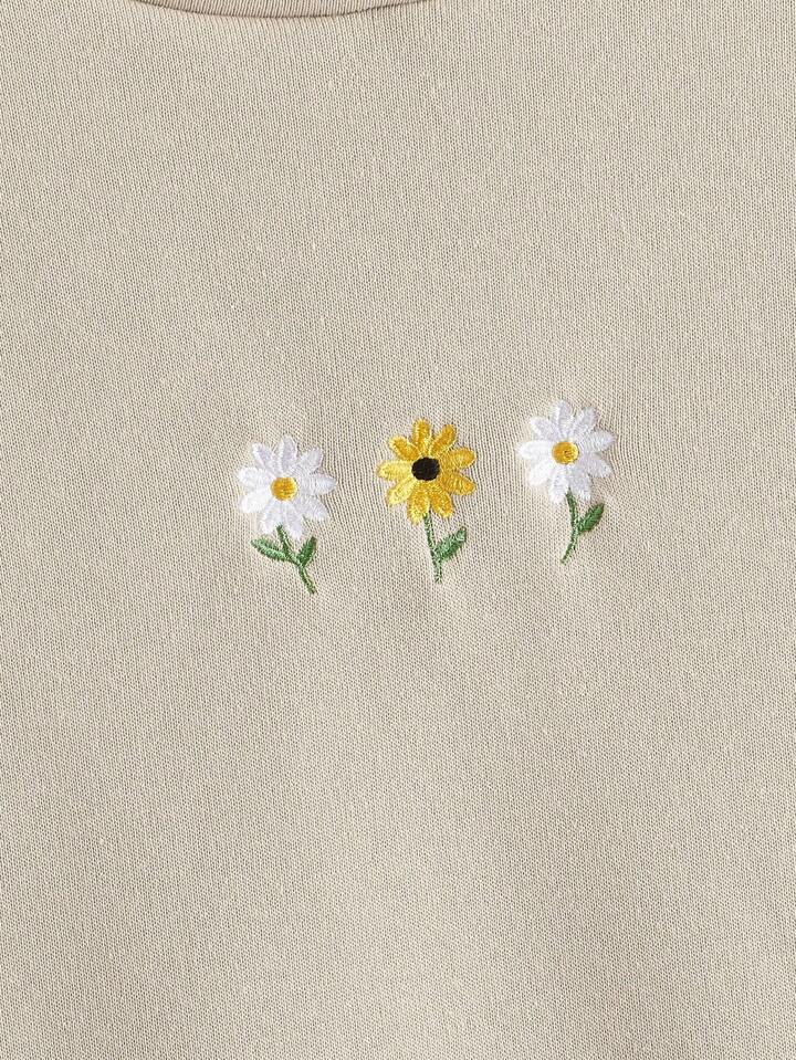 مقاس كبير قميص ثقيل مطرز بأزهار منخفض الاكتاف