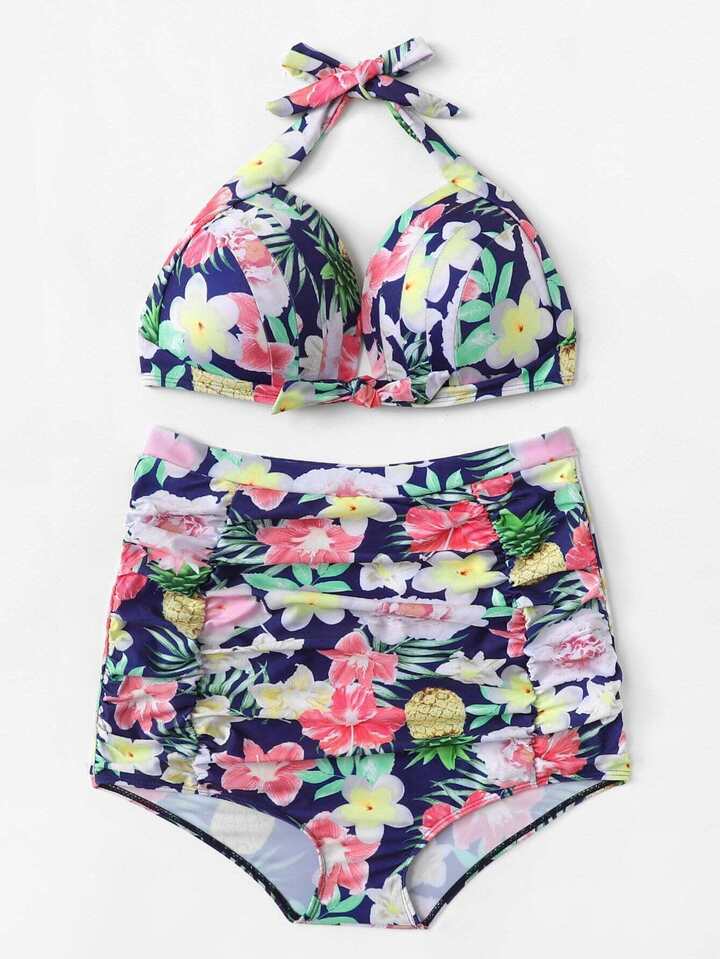 ملابس سباحة حجم كبير الثنية رسم الزهر متعدد الألوان