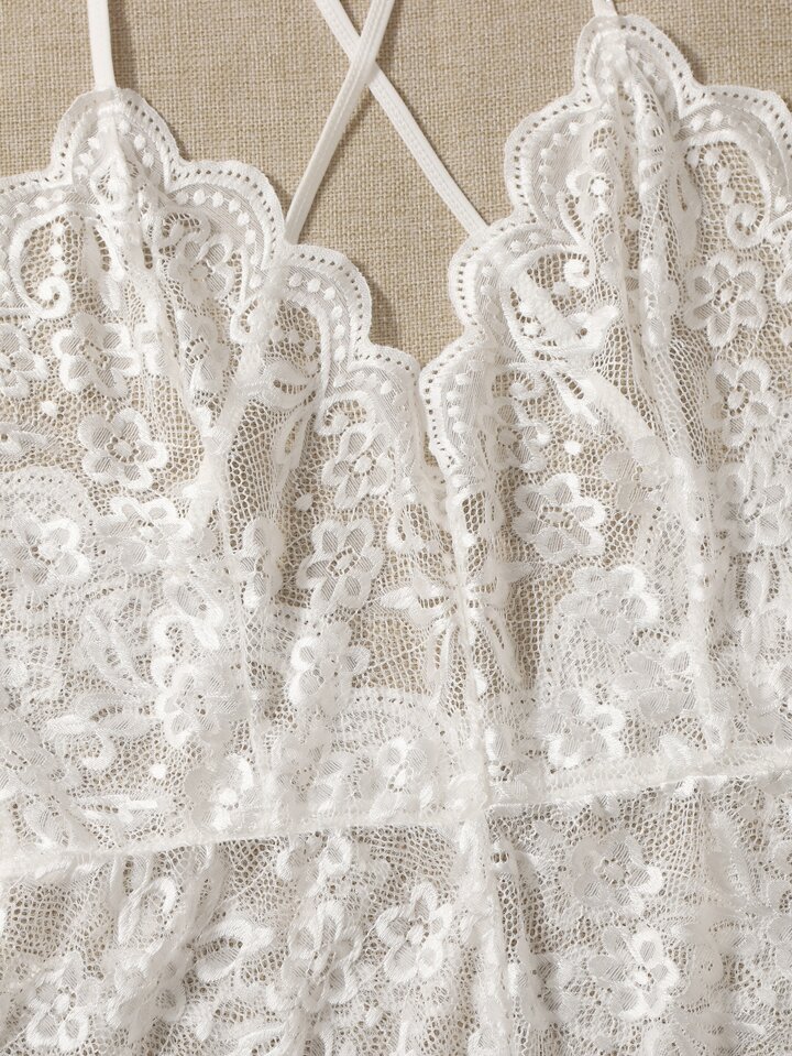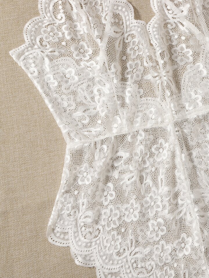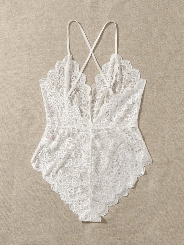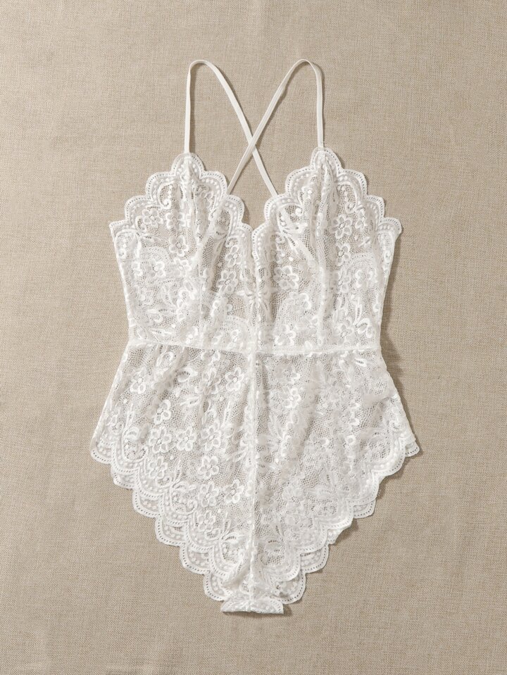مقاس كبير بدسويت تيدي دانتيل زهري مقلم شكل اقواس