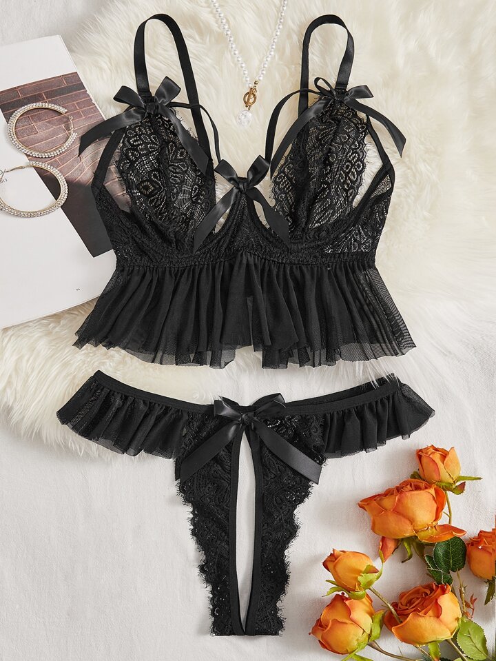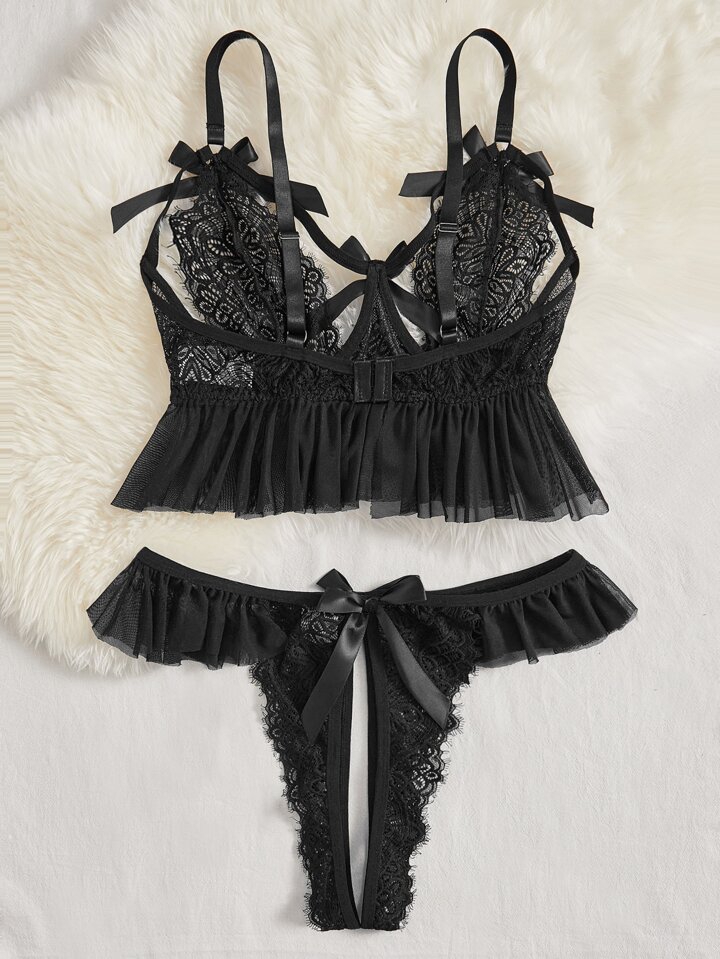 طقم ملابس داخلية دانتيل زهري حلقة معدني مقاس كبير